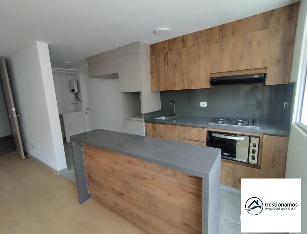 Apartamento de 65 m2, 2 alcobas, sala comedor, cocina integral, 2 baños, 2 closets, piso en cerámica y madera laminada, zona de ropa, parqueadero, cuarto útil, excelentes acabados e iluminación.