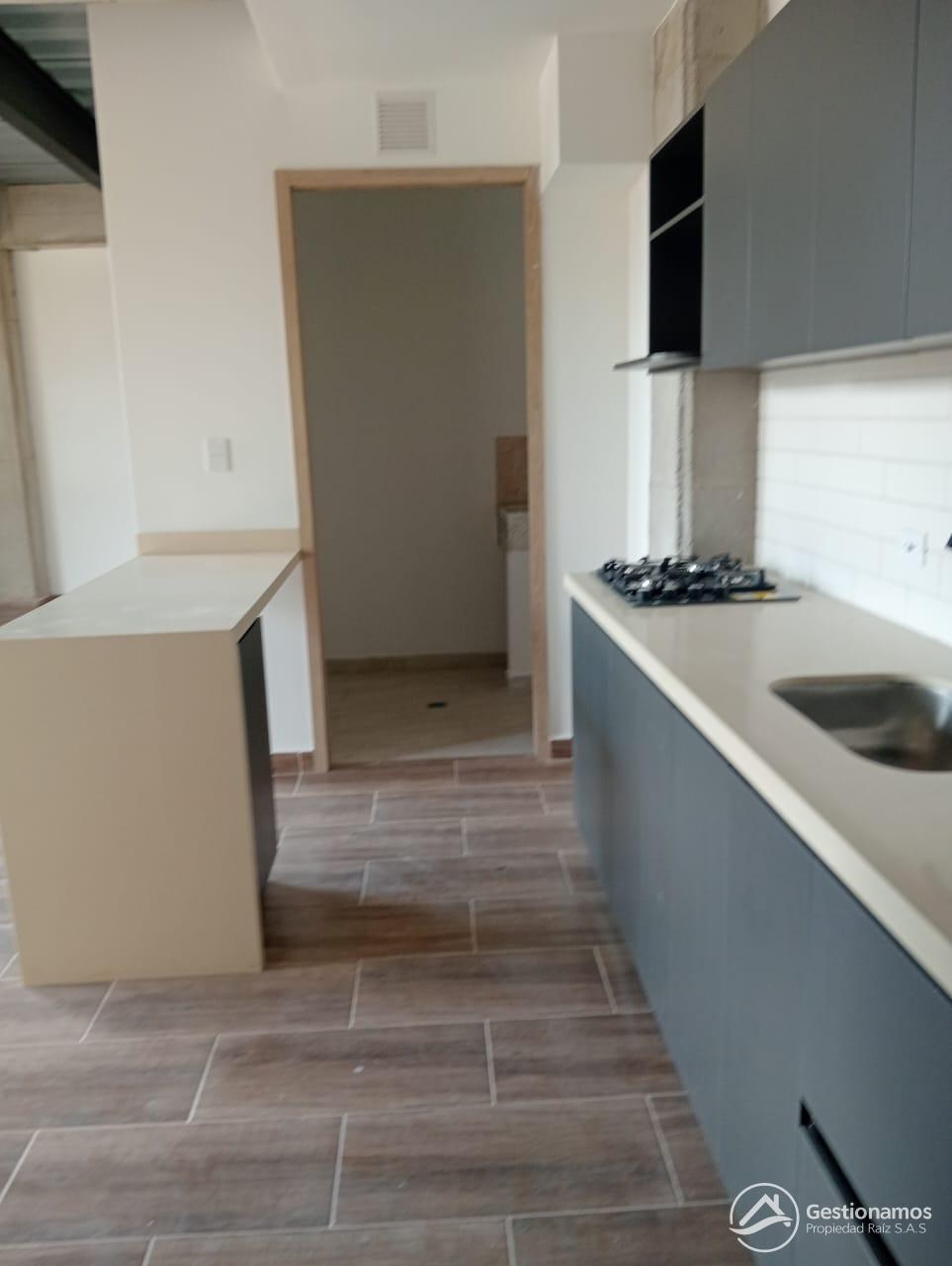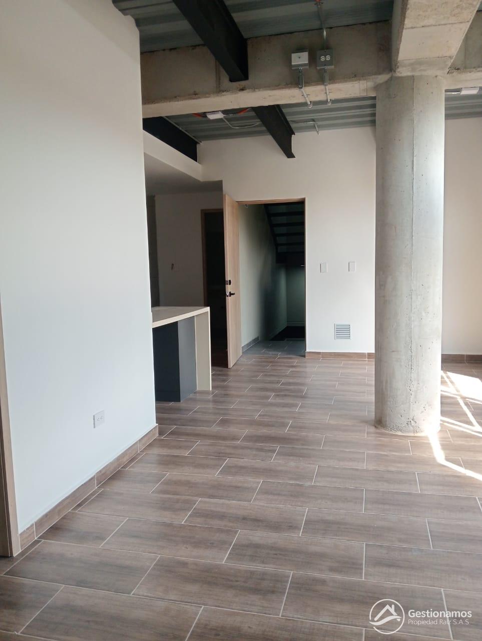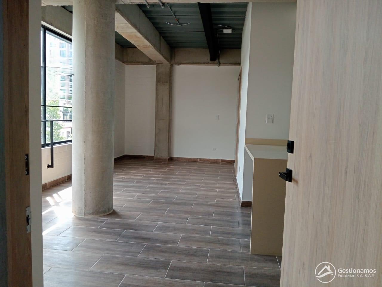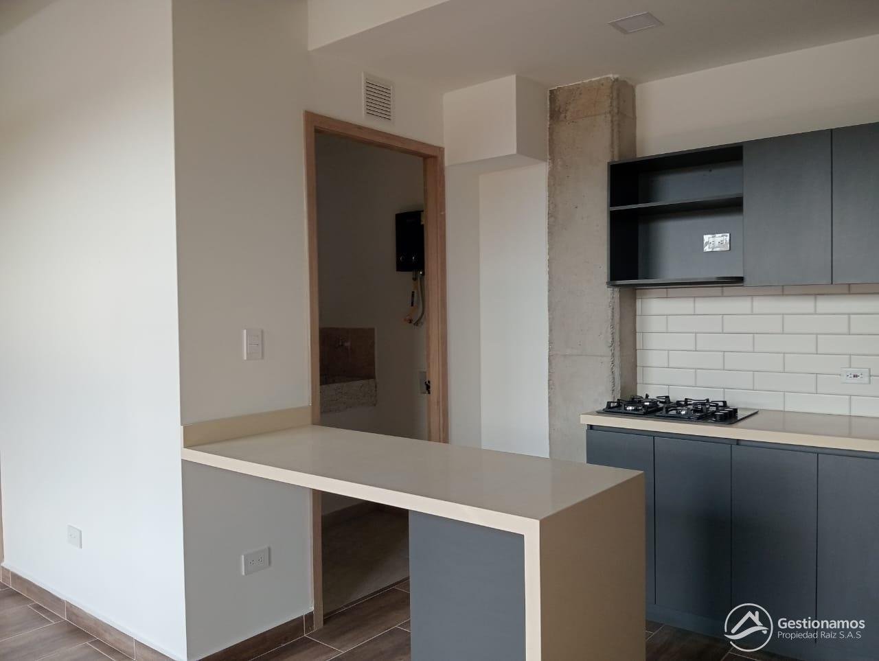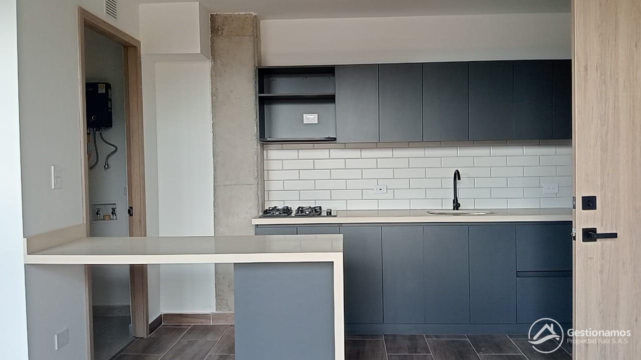 Apartaestudio de 45 m2, un solo ambiente, cocina integral, 2 baños, piso en cerámica, zona de ropa, excelentes acabados e iluminación.