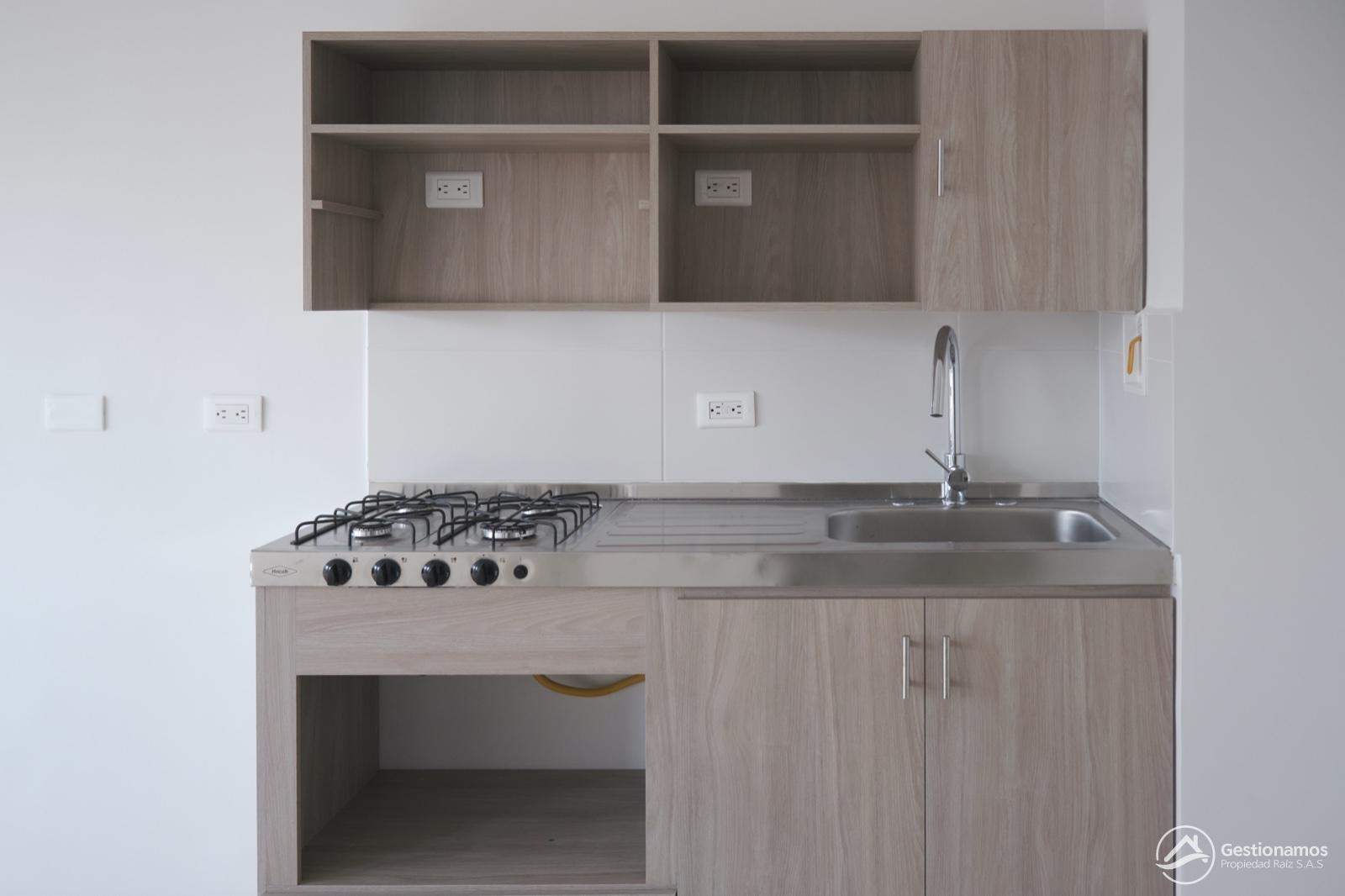 Apartamento de 58 m2, 3 alcobas, sala comedor, cocina integral, 2 baños, 2 closets, 1 vestier, piso en cerámica y madera laminada , zona de ropa, parqueadero cubierto, cuarto útil, excelentes acabados e iluminación.