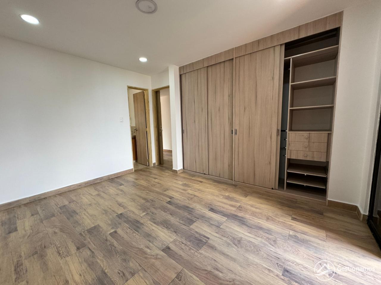Apartamento de 113 m2, 3 alcobas, sala comedor, cocina integral, 3 baños, 3 closets, piso en cerámica, madera laminada, zona de ropa, parqueadero cubierto, cuarto útil, excelentes acabados e iluminación.