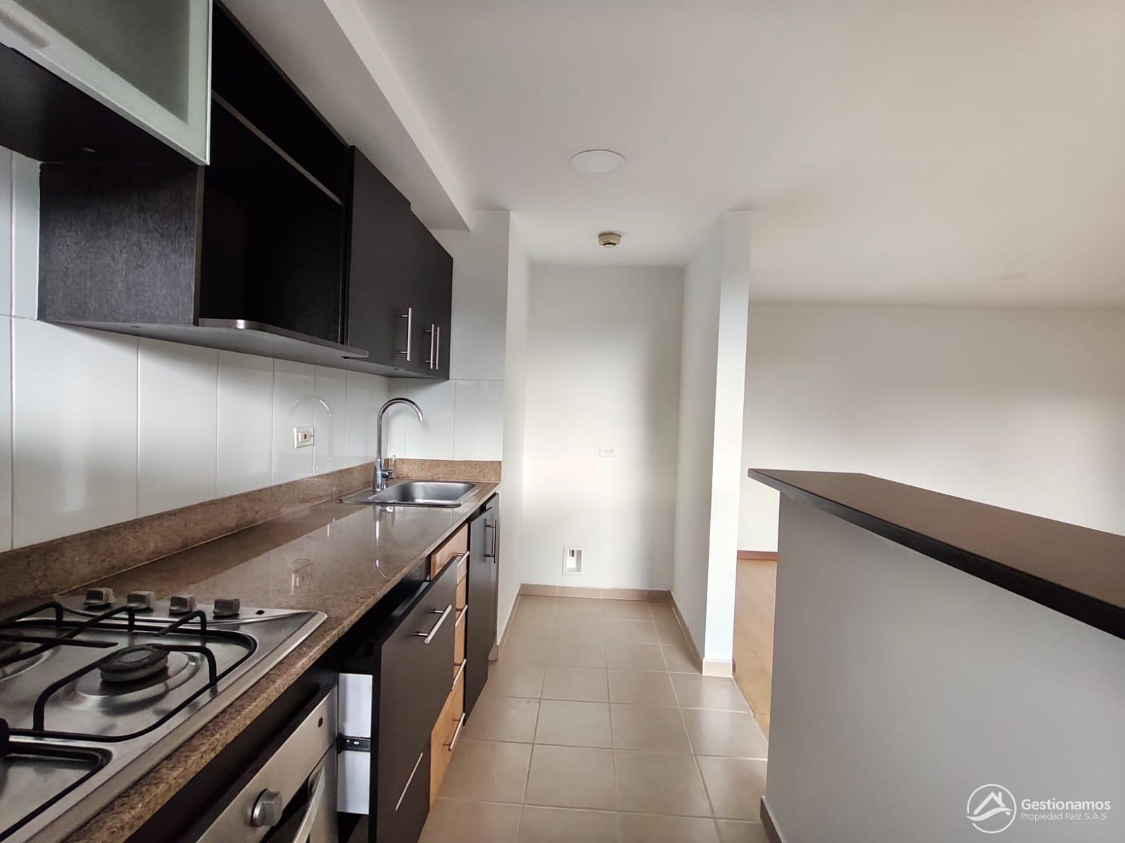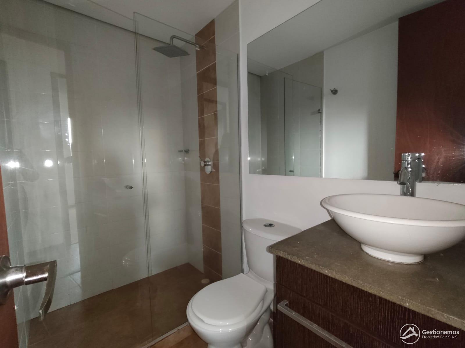 Apartamento de 80 m2, 3 alcobas, sala comedor, cocina integral, 2 baños, 3 closets, piso en cerámica y madera laminada , zona de ropa, parqueadero cubierto, cuarto útil, excelentes acabados e iluminación.