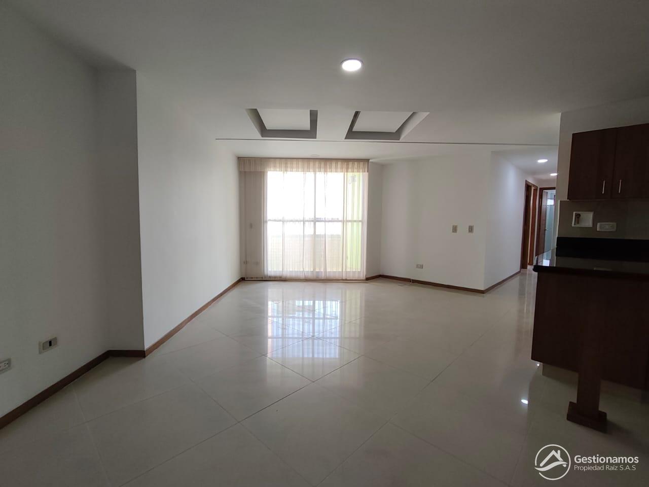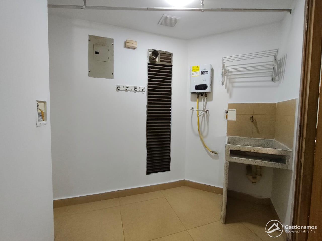 Apartamento de 120 m2, 3 alcobas más servicio, sala comedor, cocina integral, 2 baños más servicios, 3 closets, 2 balcones, piso en cerámica, zona de ropa, parqueadero cubierto, cuarto útil, excelentes acabados e iluminación.