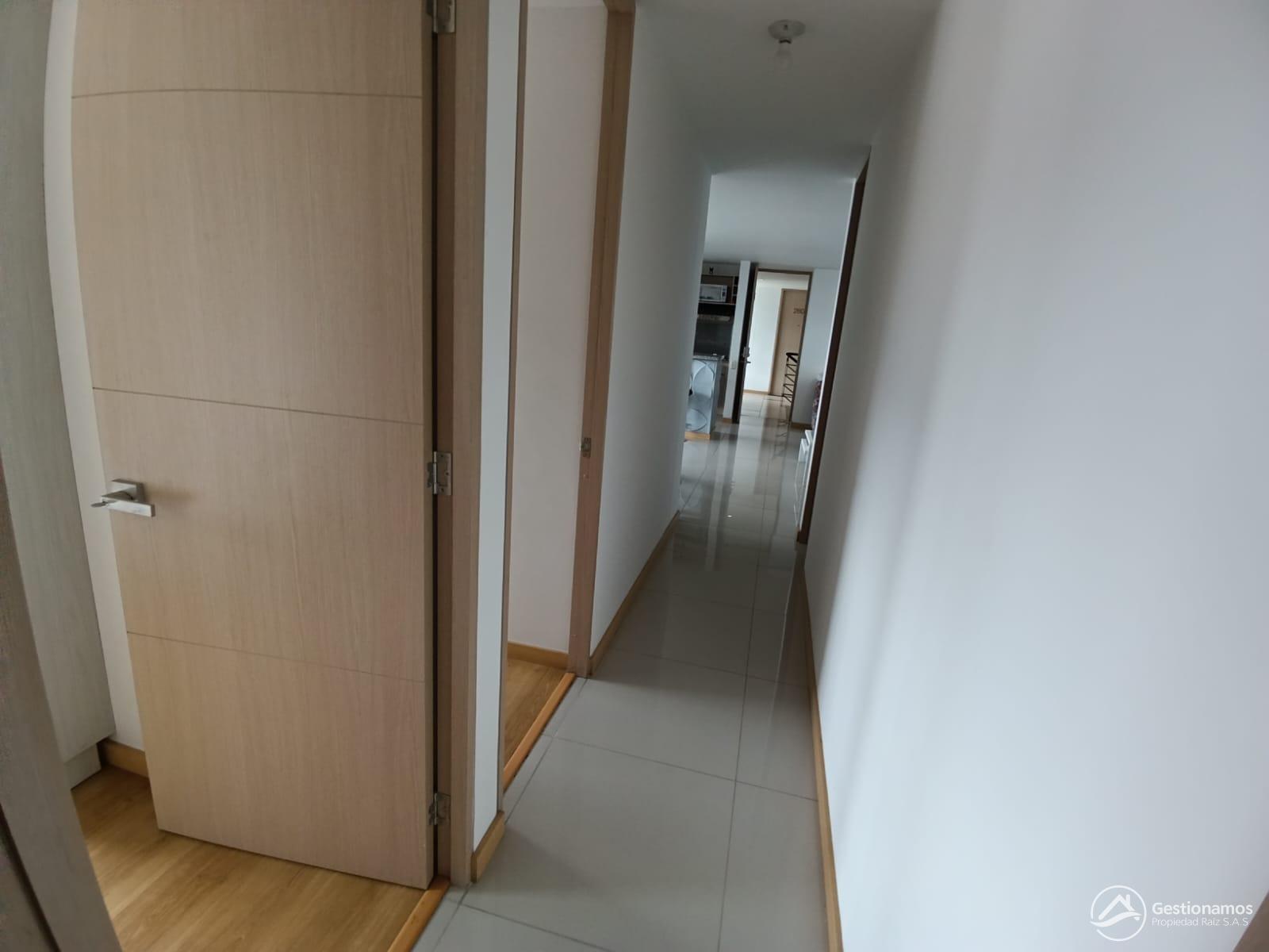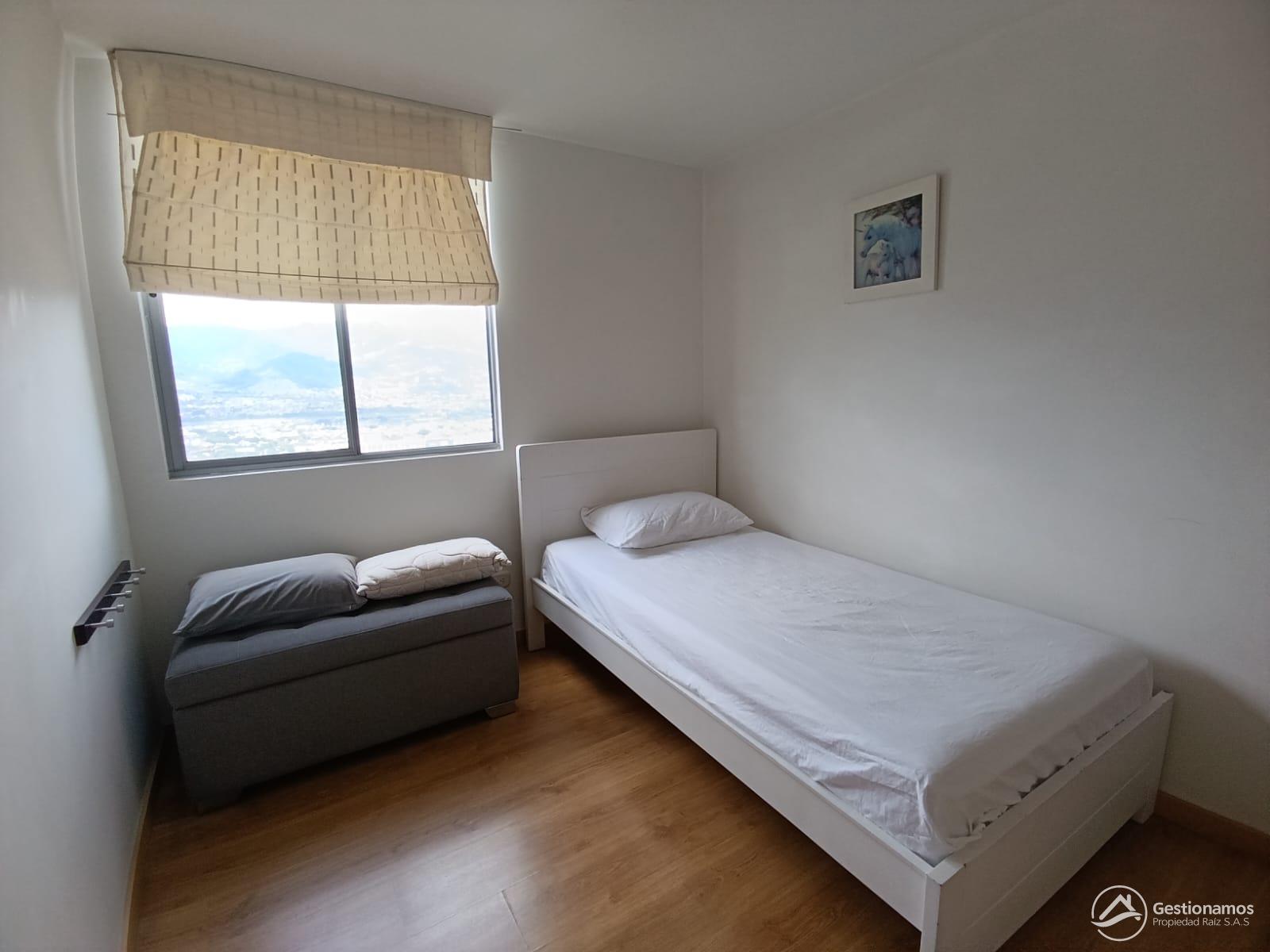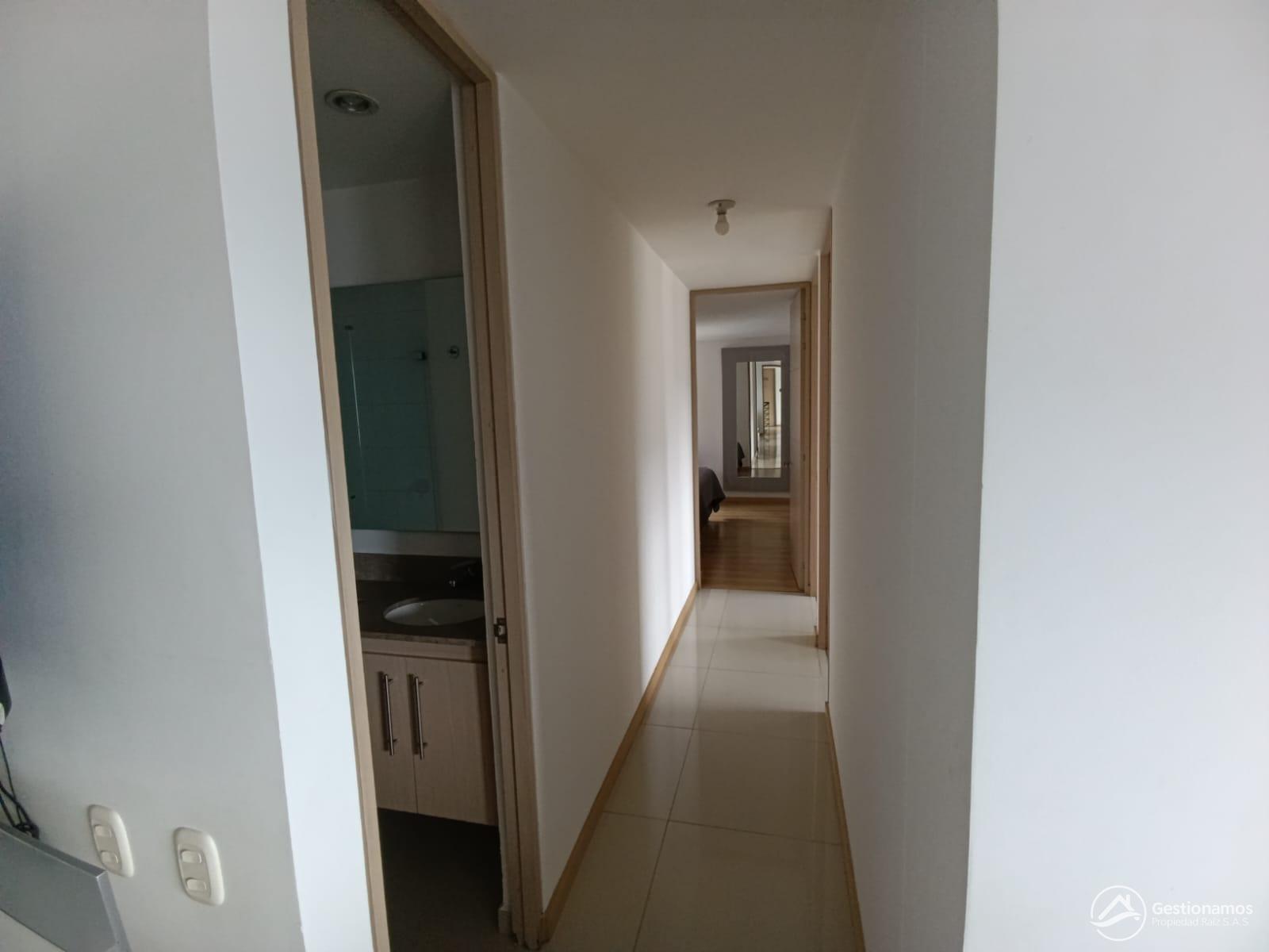 Apartamento de 98 m2, amoblado, 3 alcobas, sala comedor, cocina integral, 2 baños cabinados, 2 closets, 1 vestier, piso en cerámica, zona de ropa, parqueadero cubierto, excelentes acabados e iluminación.