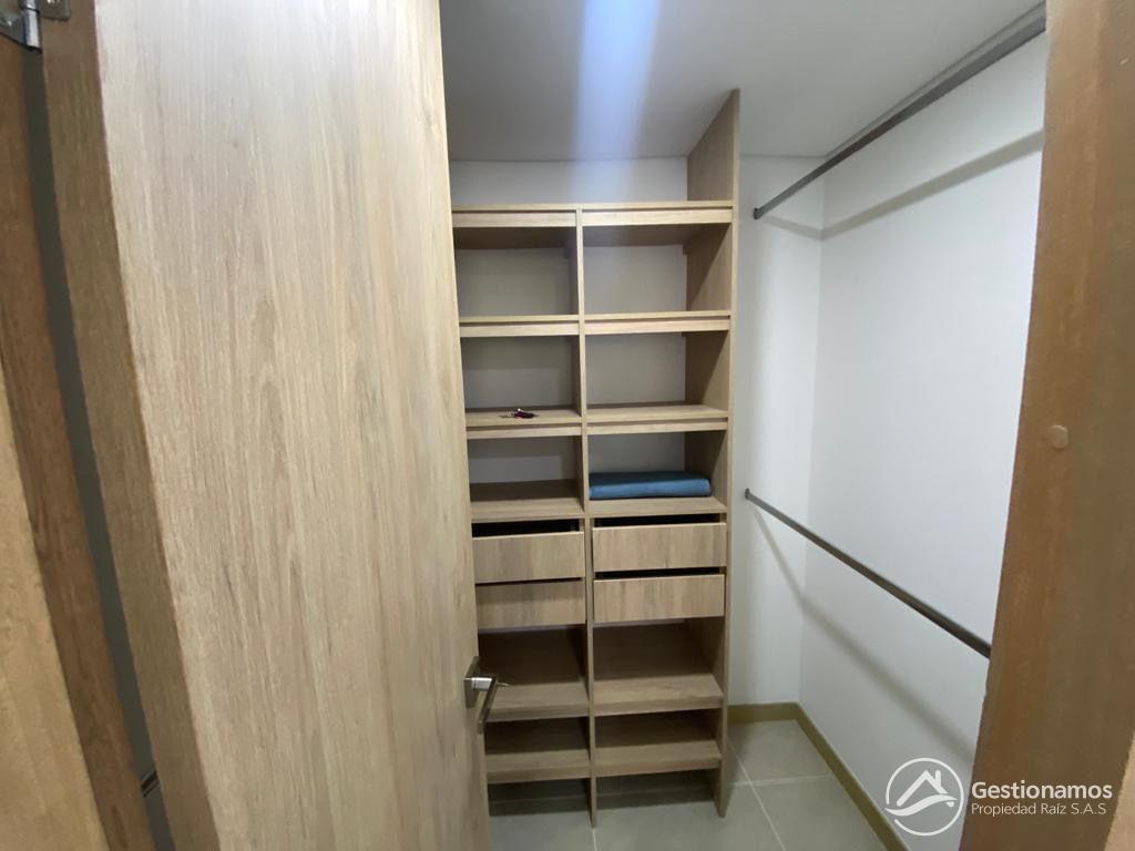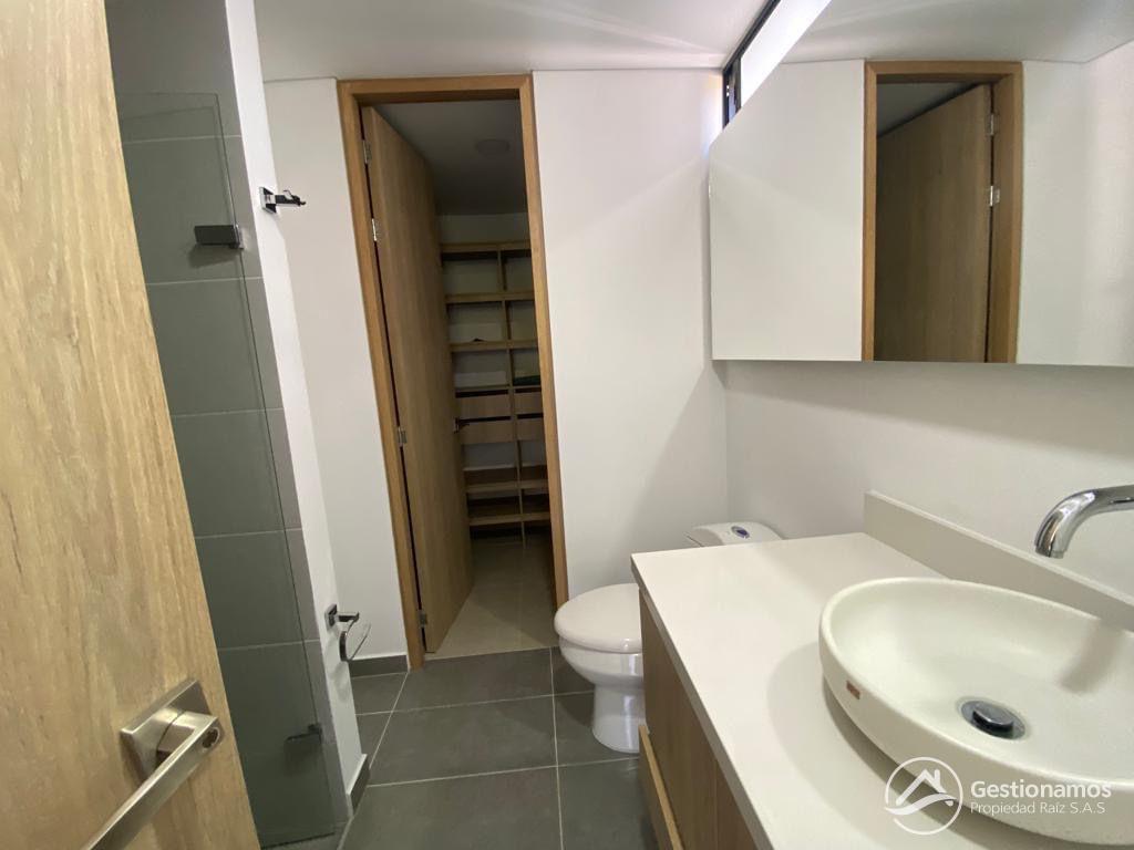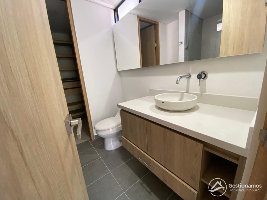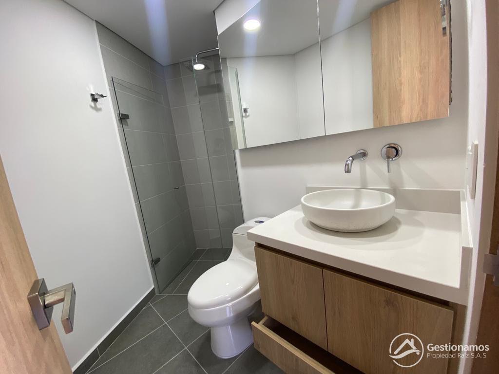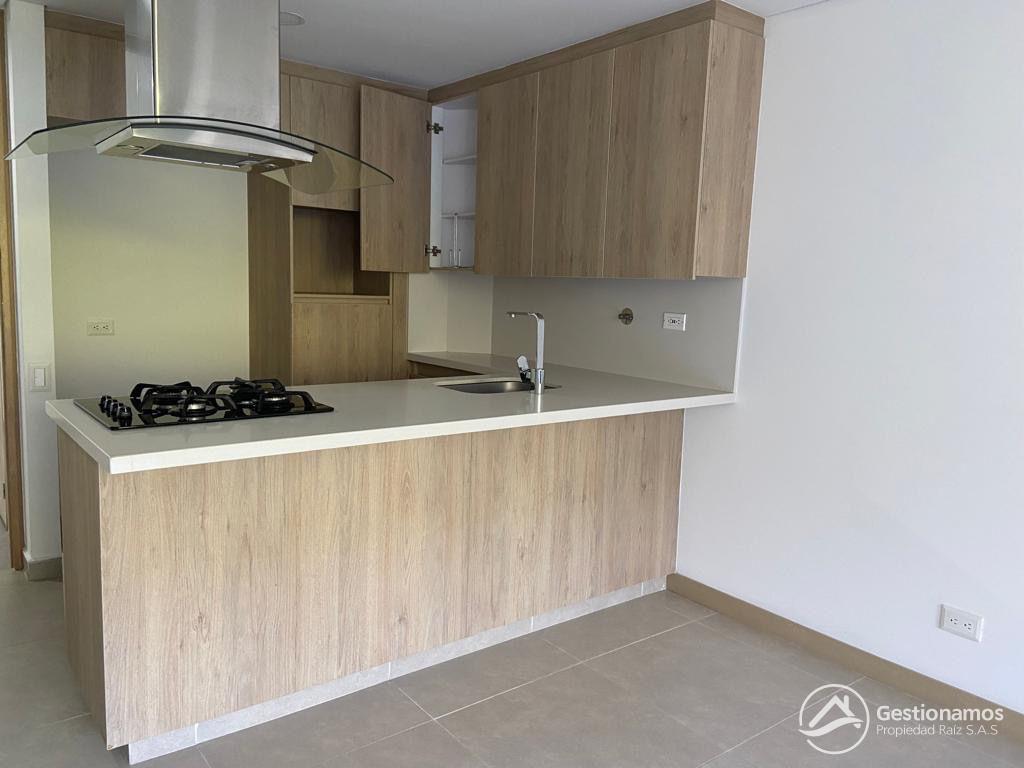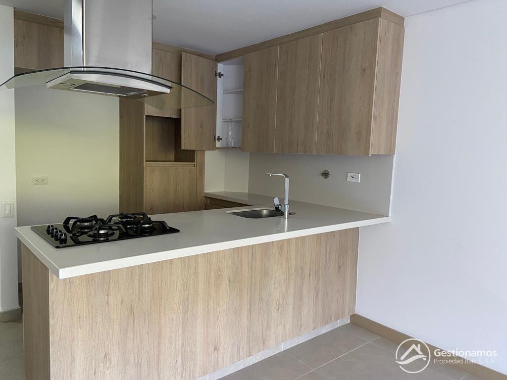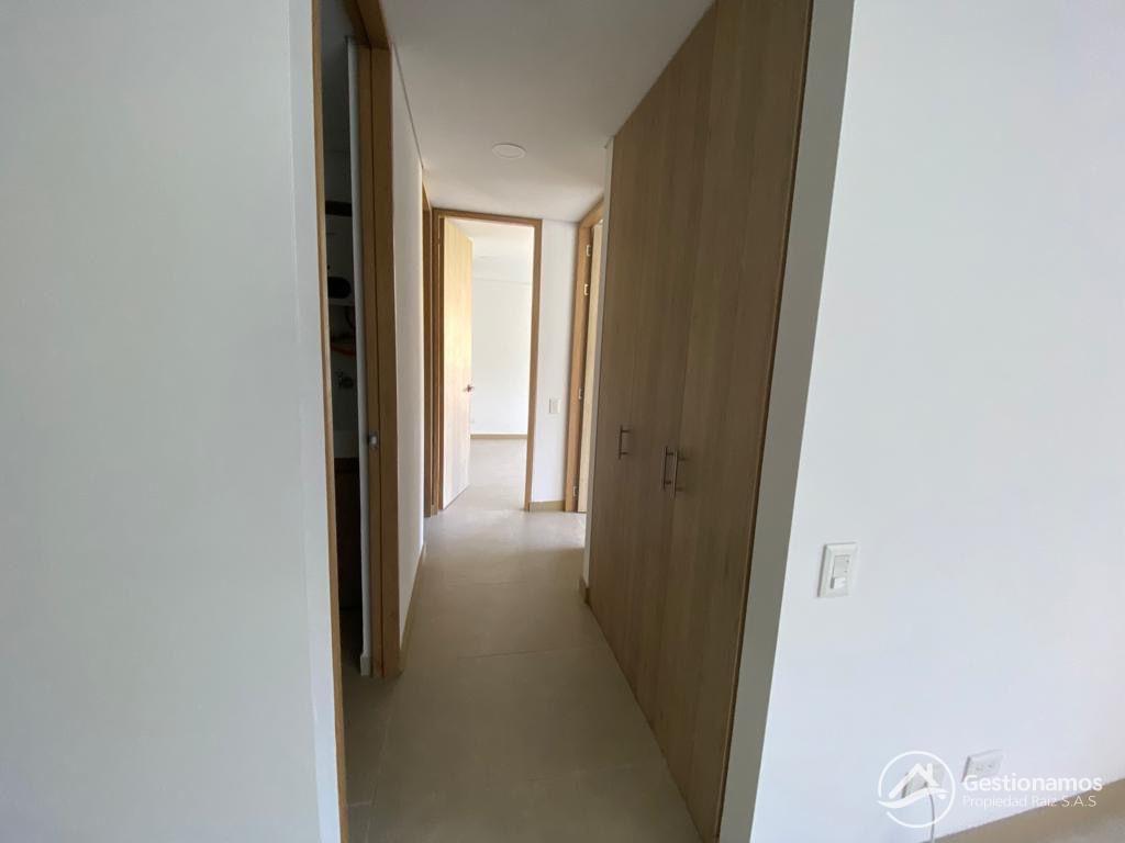 Apartamento de 65 m2, 2 alcobas, sala comedor, cocina integral, 2 baños, 2 closets, 1 vestier, piso en porcelanato, zona de ropa, 2 parqueaderos cubiertos, cuarto útil, excelentes acabados e iluminación.