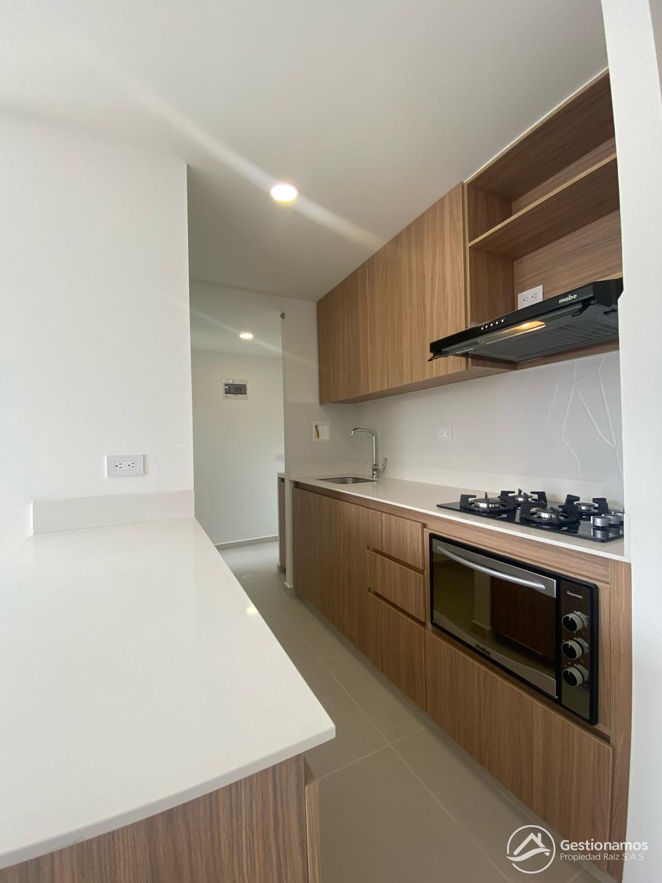 Apartamento de 67 m2, 3 alcobas, sala comedor, cocina integral, 2 baños, 3 closets, piso en cerámica, zona de ropa, parqueadero cubierto, cuarto útil, excelentes acabados e iluminación.
