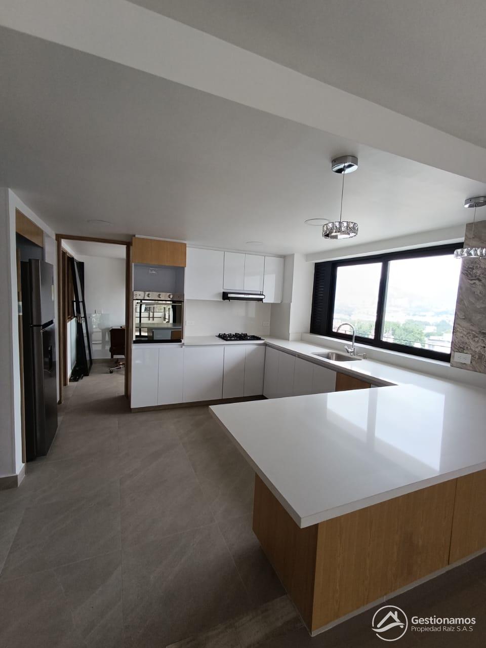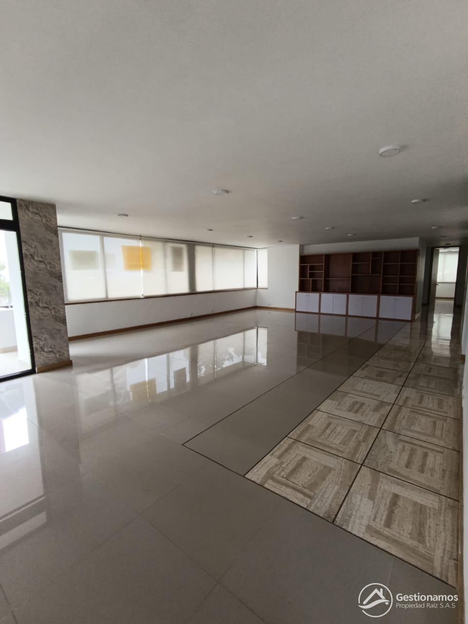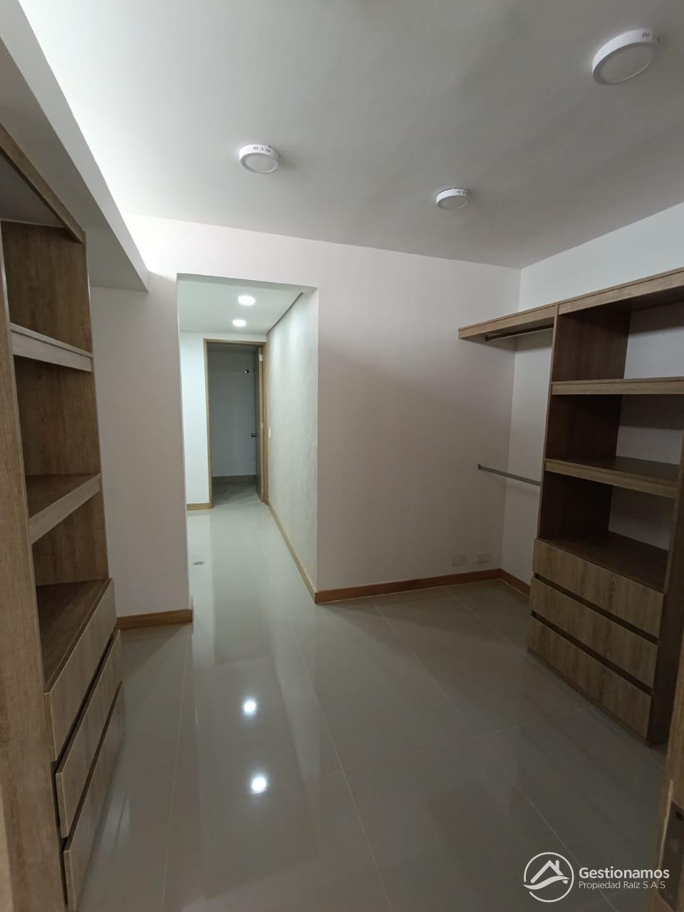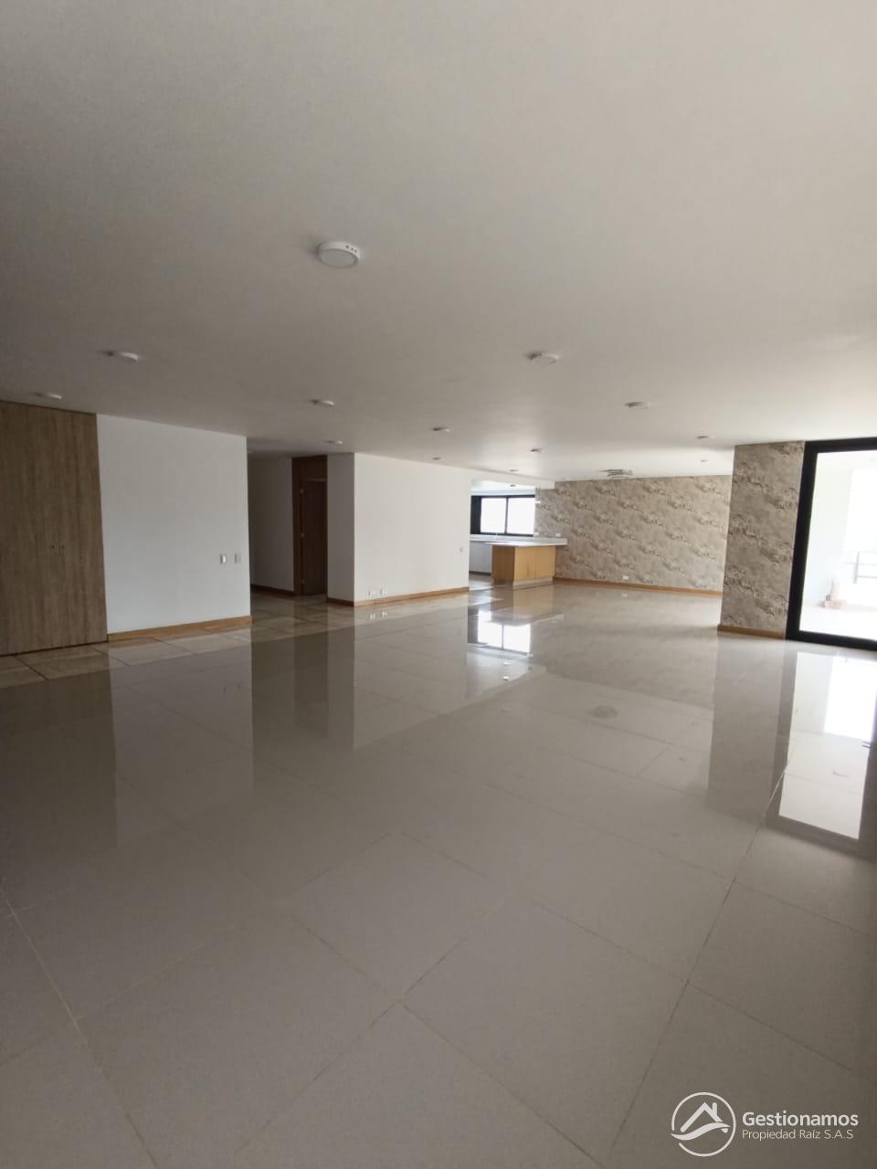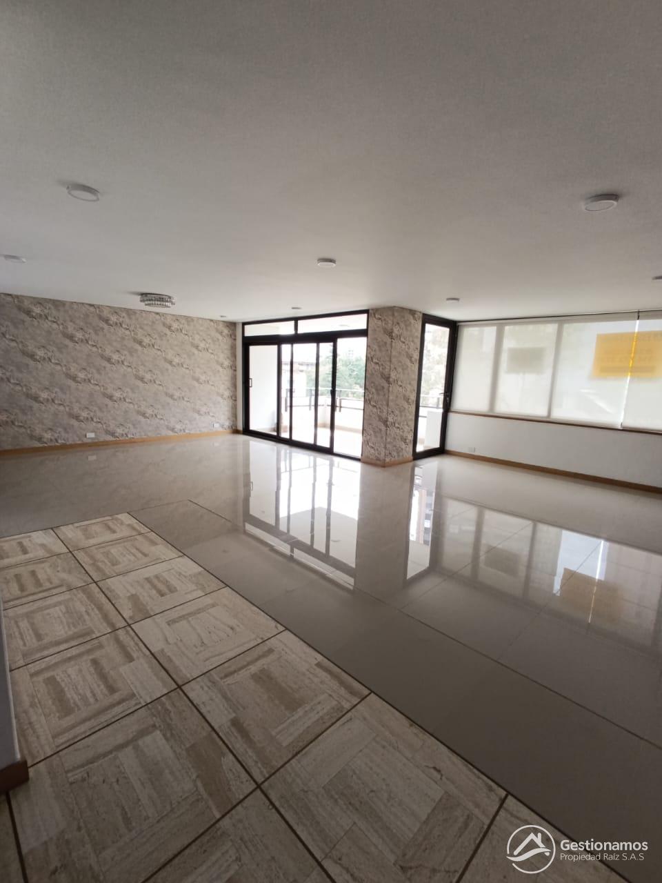 Apartamento de 214 m2, 3 alcobas más servicio, sala comedor, cocina integral, 4 baños, 4 closets, piso en porcelanato, zona de ropa, parqueadero cubierto, cuarto útil, excelentes acabados e iluminación.