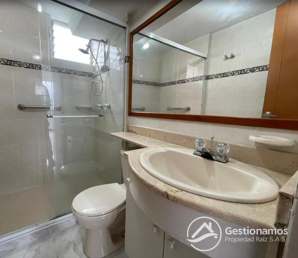 Apartamento de 100 m2, 3 alcobas, sala comedor, cocina integral, 2 baños, 2 closets, 1 vestier, piso en cerámica, zona de ropa, parqueadero, excelentes acabados e iluminación.