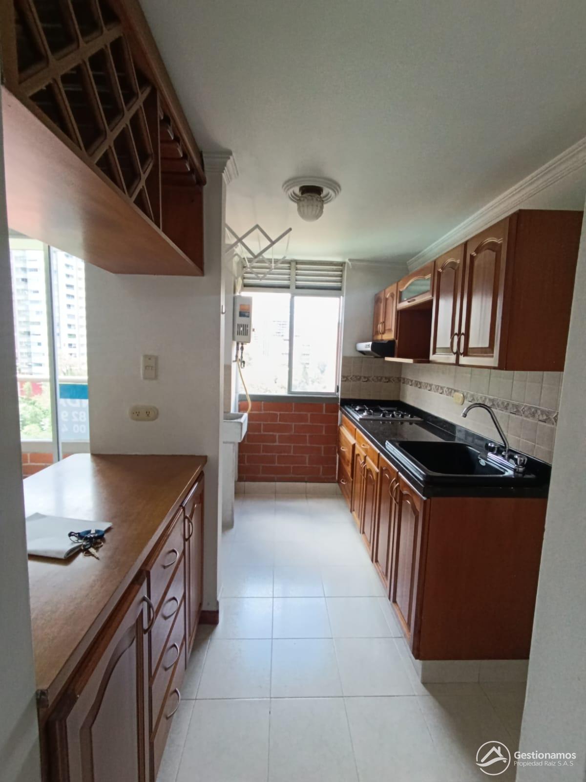 Apartamento de 60 m2, 2 alcobas, sala comedor, estudio, cocina integral, 2 baños, 2 closets, piso en baldosa, zona de ropa, parqueadero cubierto, excelentes acabados e iluminación.