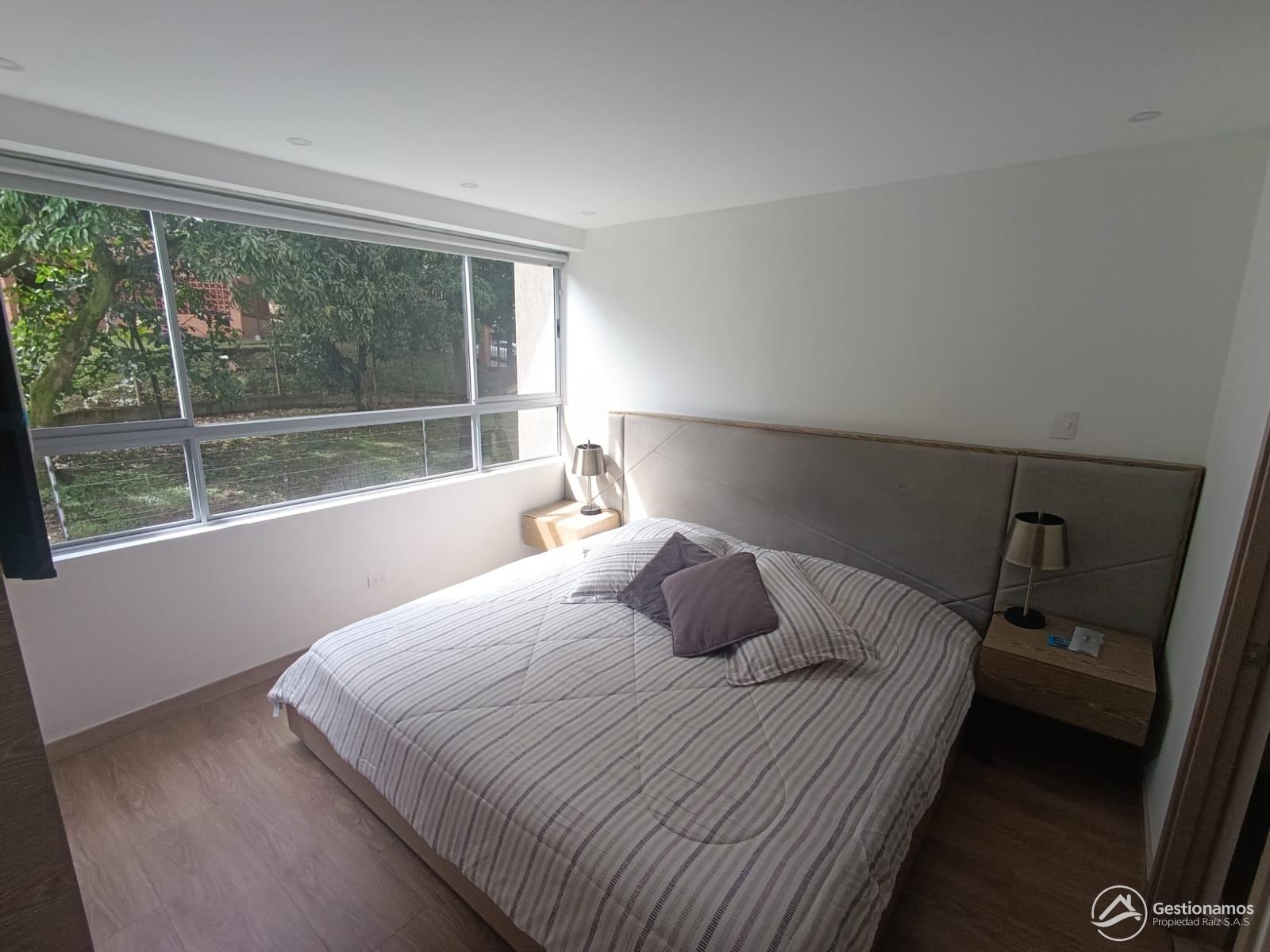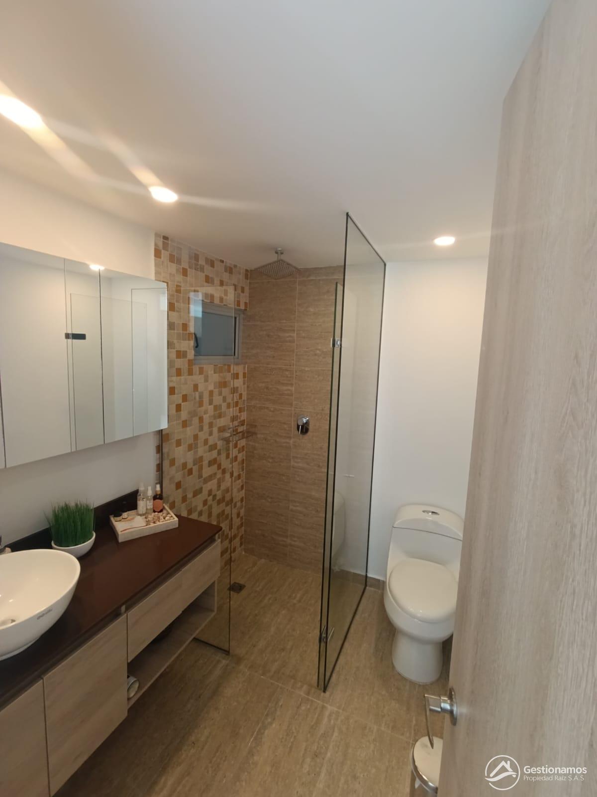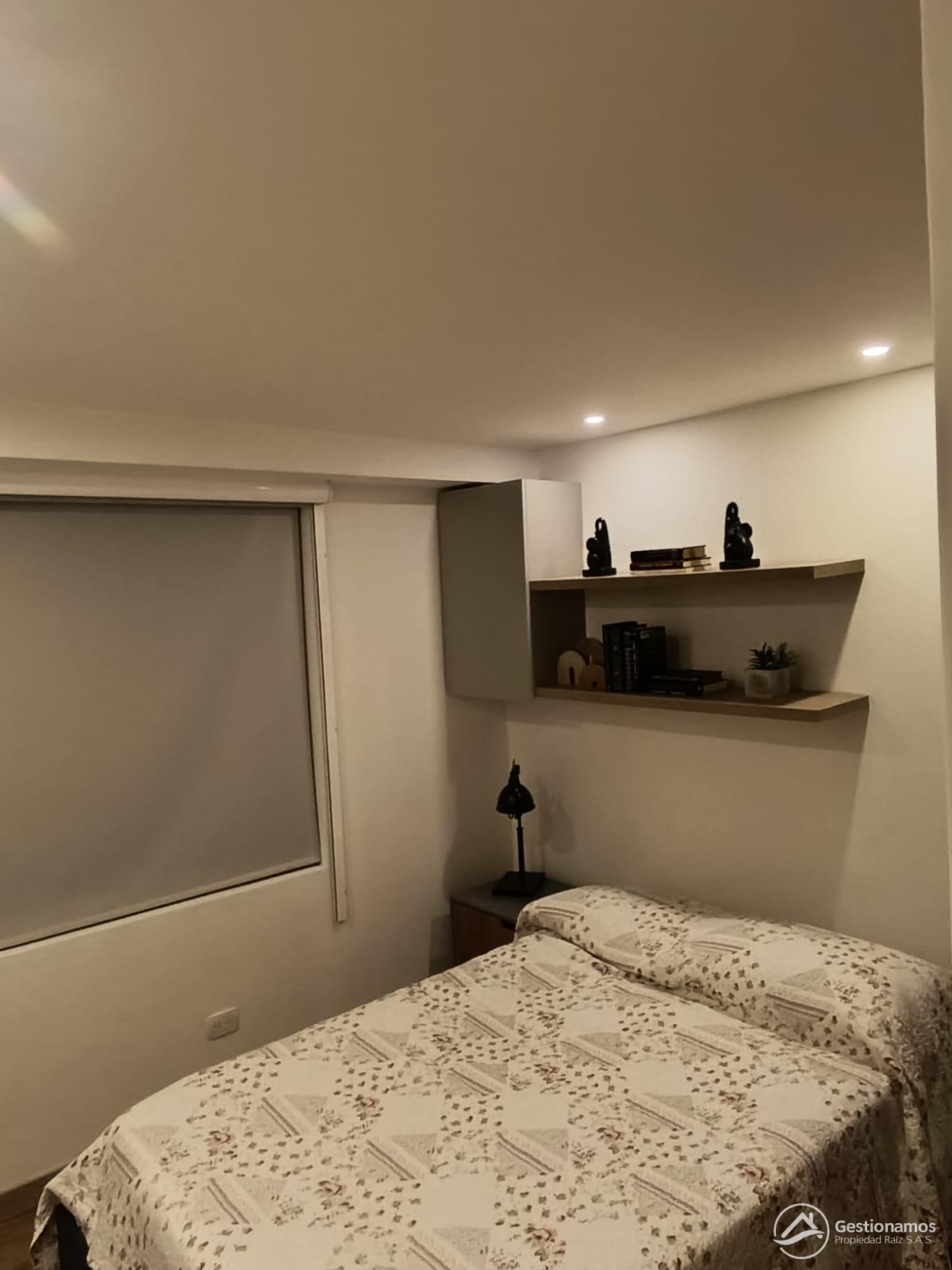 Apartamento de 93 m2, amoblado, 2 alcobas, sala comedor, cocina integral, 2 baño, 2 closets, 1 vestier, piso en cerámica, zona de ropa, parqueadero doble lineal, cuarto útil, excelentes acabados e iluminación.