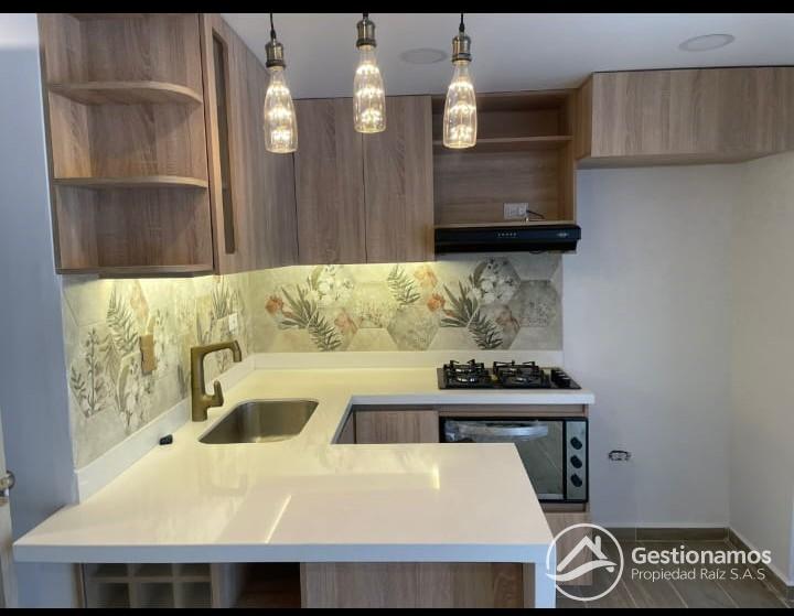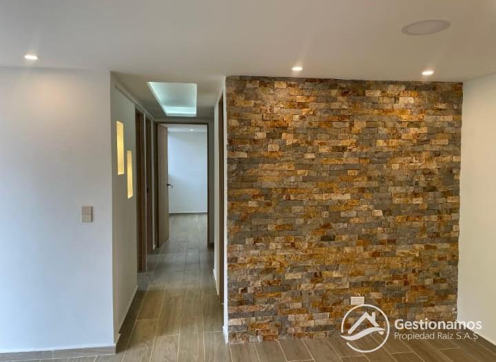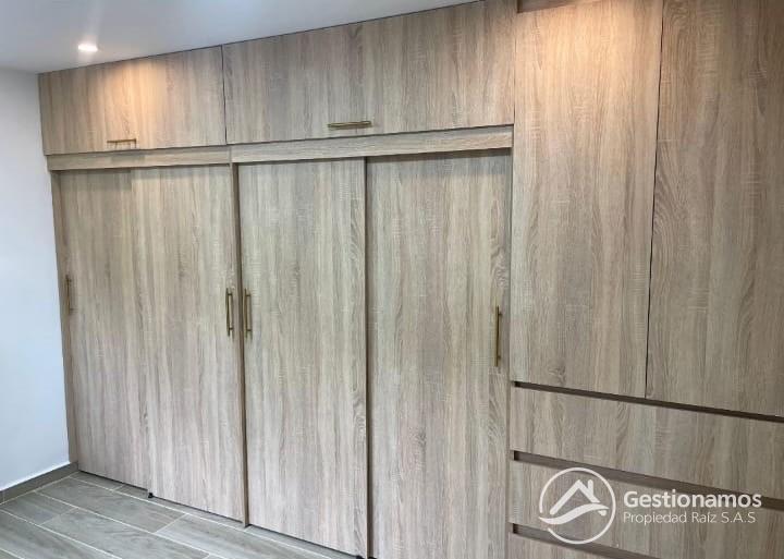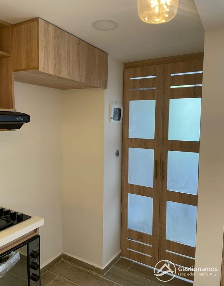 Apartamento de 57 m2, 3 alcobas, sala comedor, cocina integral, 2 baños, 3 closets, piso en cerámica, zona de ropa, parqueadero para moto, excelentes acabados e iluminación.