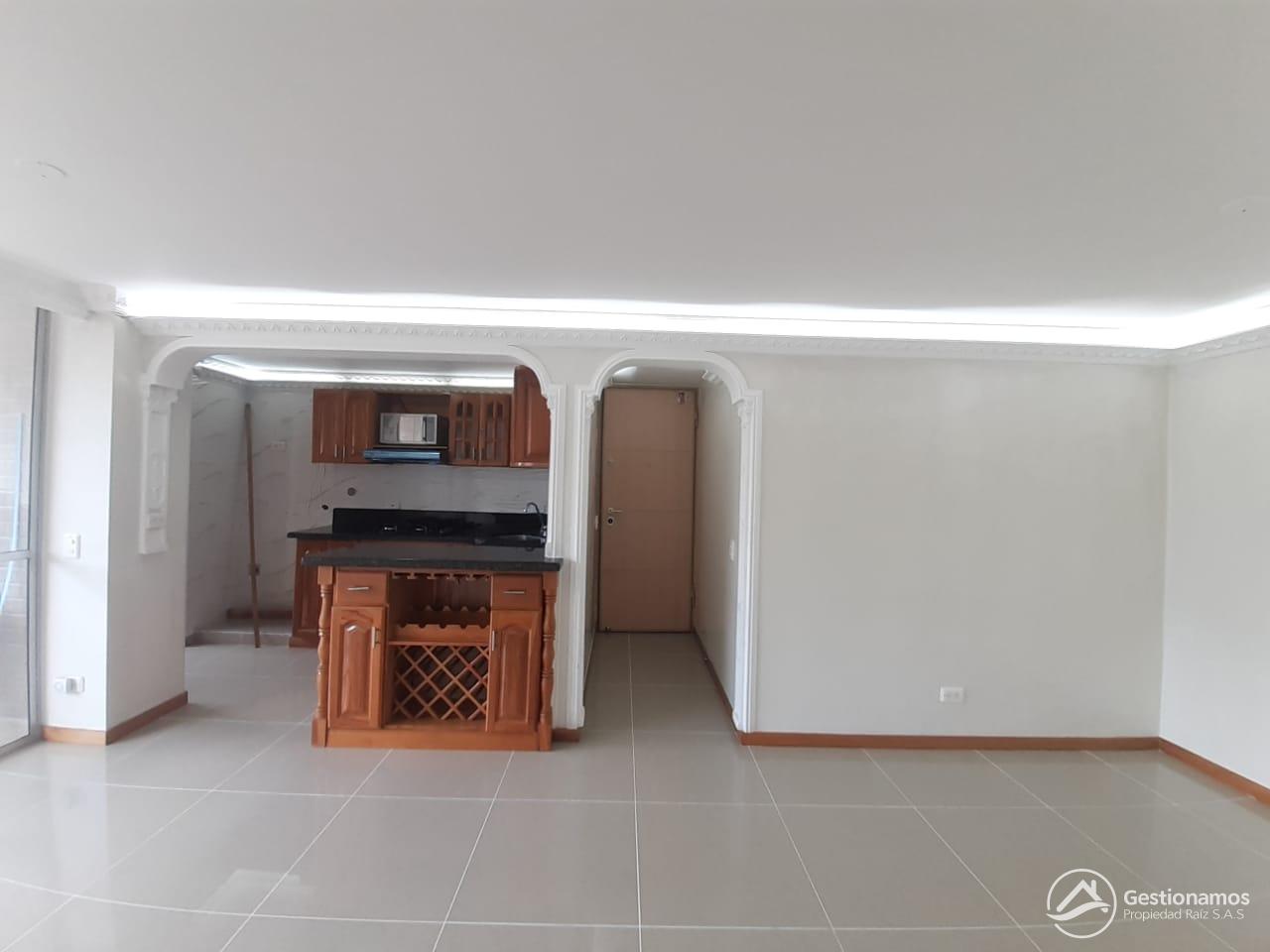 Apartamento de 90 m2, 3 alcobas, sala comedor, cocina integral, 2 baños, 3 closets, 1 vestir, piso en cerámica, zona de ropa, balcón, parqueadero, excelentes acabados e iluminación.