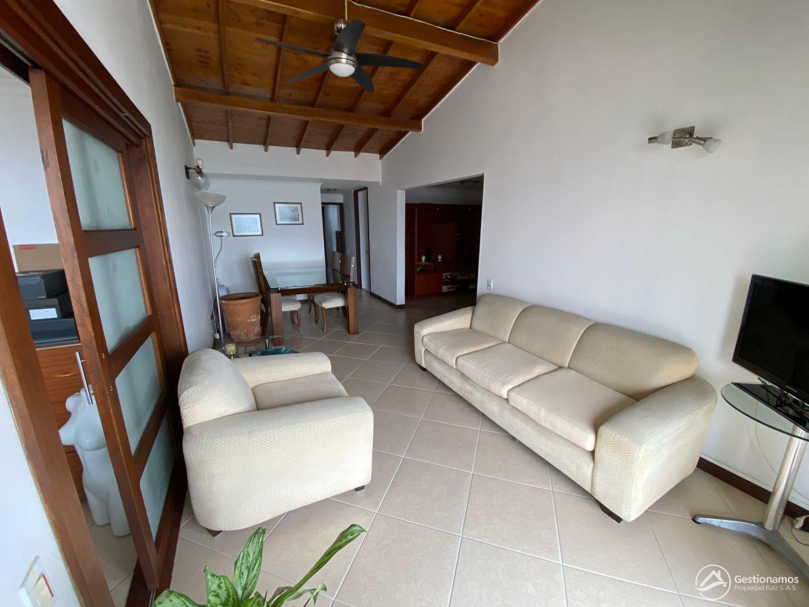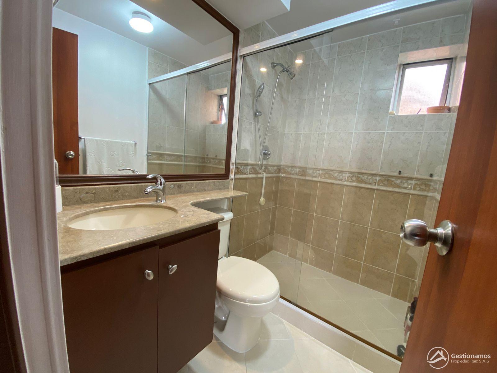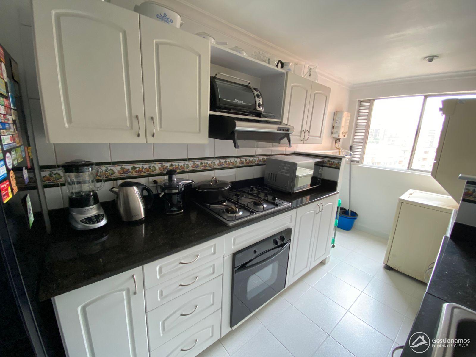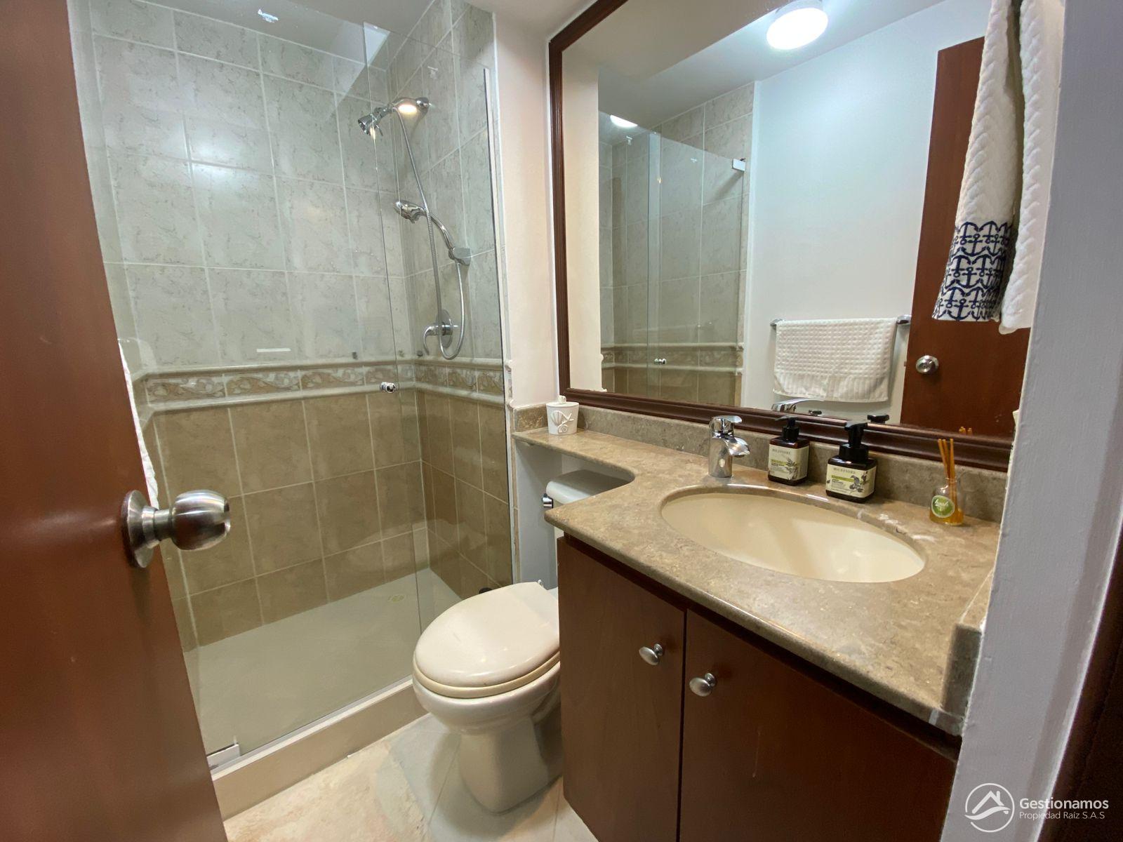 Apartamento de 110 m2, amoblado, 3 alcobas, sala comedor, cocina integral, 2 baños, 2 closets, 1 vestir, piso en cerámica, zona de ropa, parqueadero, cuarto útil, excelentes acabados e iluminación.