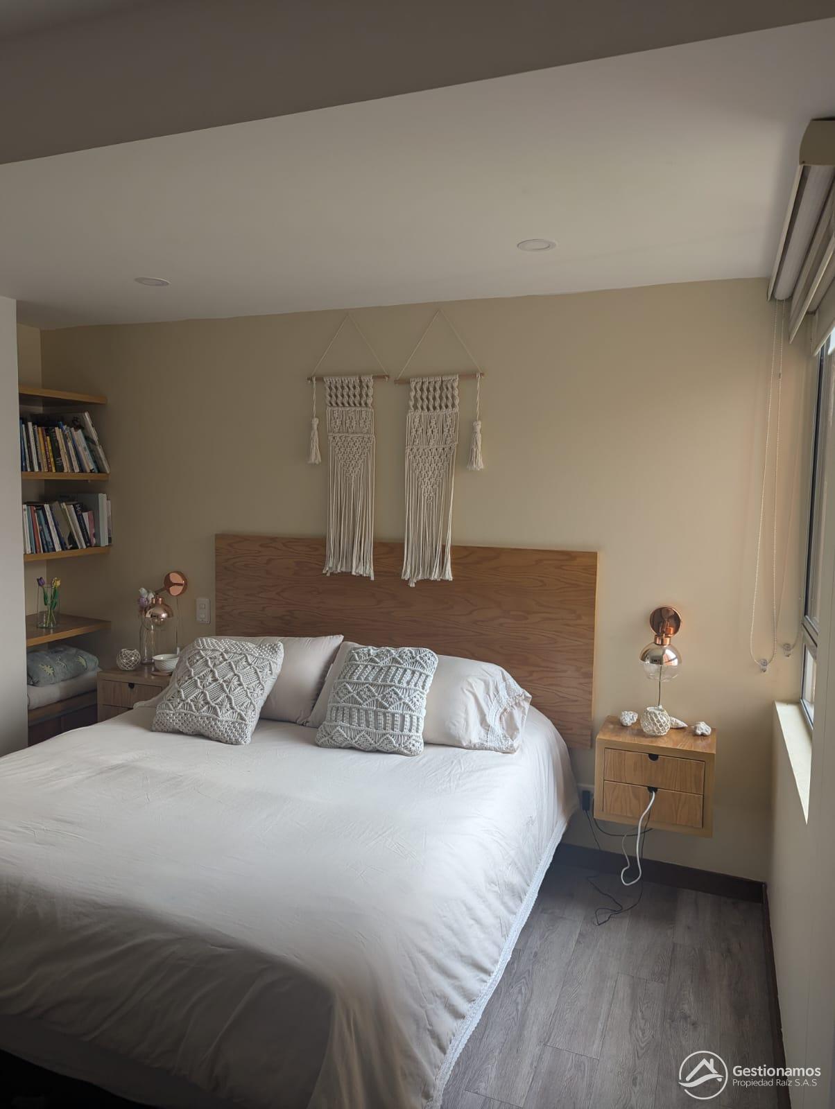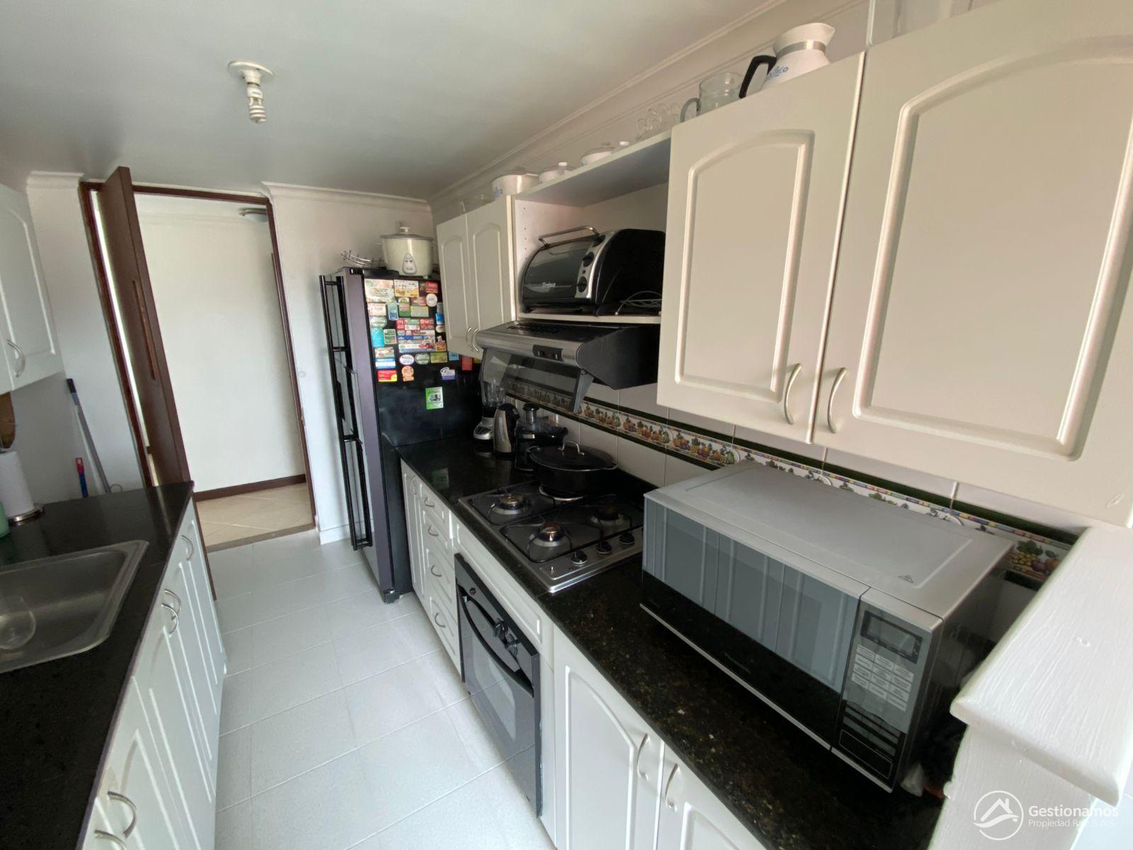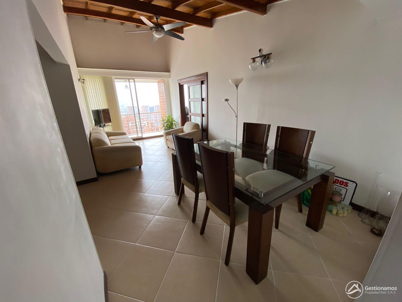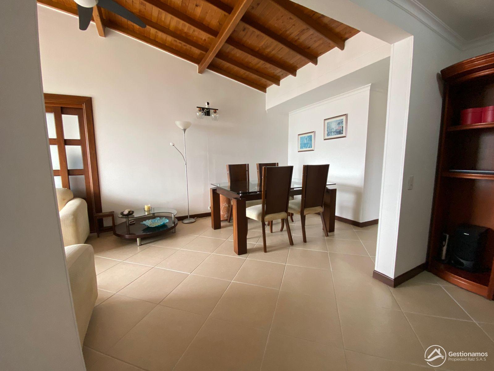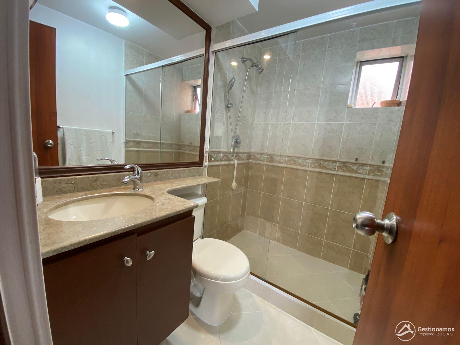 Apartamento de 110 m2, amoblado, 3 alcobas, sala comedor, cocina integral, 2 baños, 2 closets, 1 vestir, piso en cerámica, zona de ropa, parqueadero, cuarto útil, excelentes acabados e iluminación.