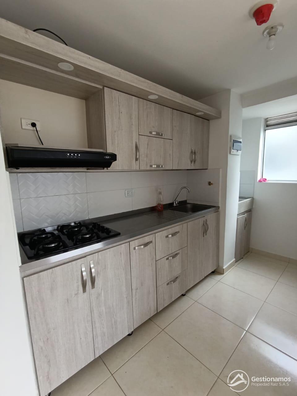 Apartamento de 50 m2, 3 alcobas, sala comedor, cocina integral, 2 baños, 3 closets, piso en cerámica, zona de ropa, parqueadero, excelentes acabados e iluminación.