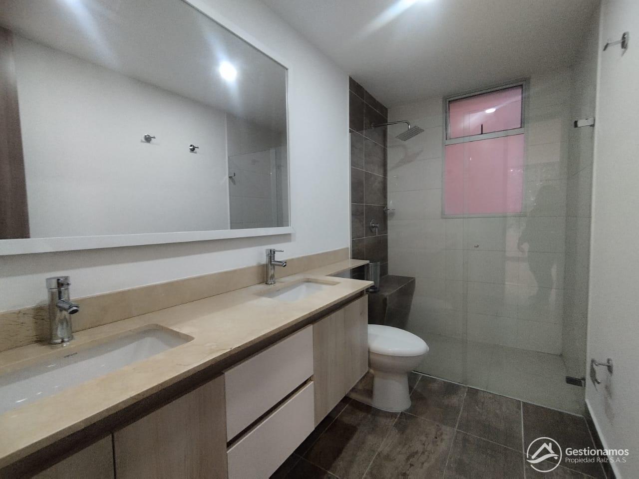 Apartamento de 120 m2, 3 alcobas, sala comedor, cocina integral, 3 baños, 2 closets, 1 vestir, piso en porcelanato, zona de ropa, parqueadero cubierto, cuarto útil, excelentes acabados e iluminación.
