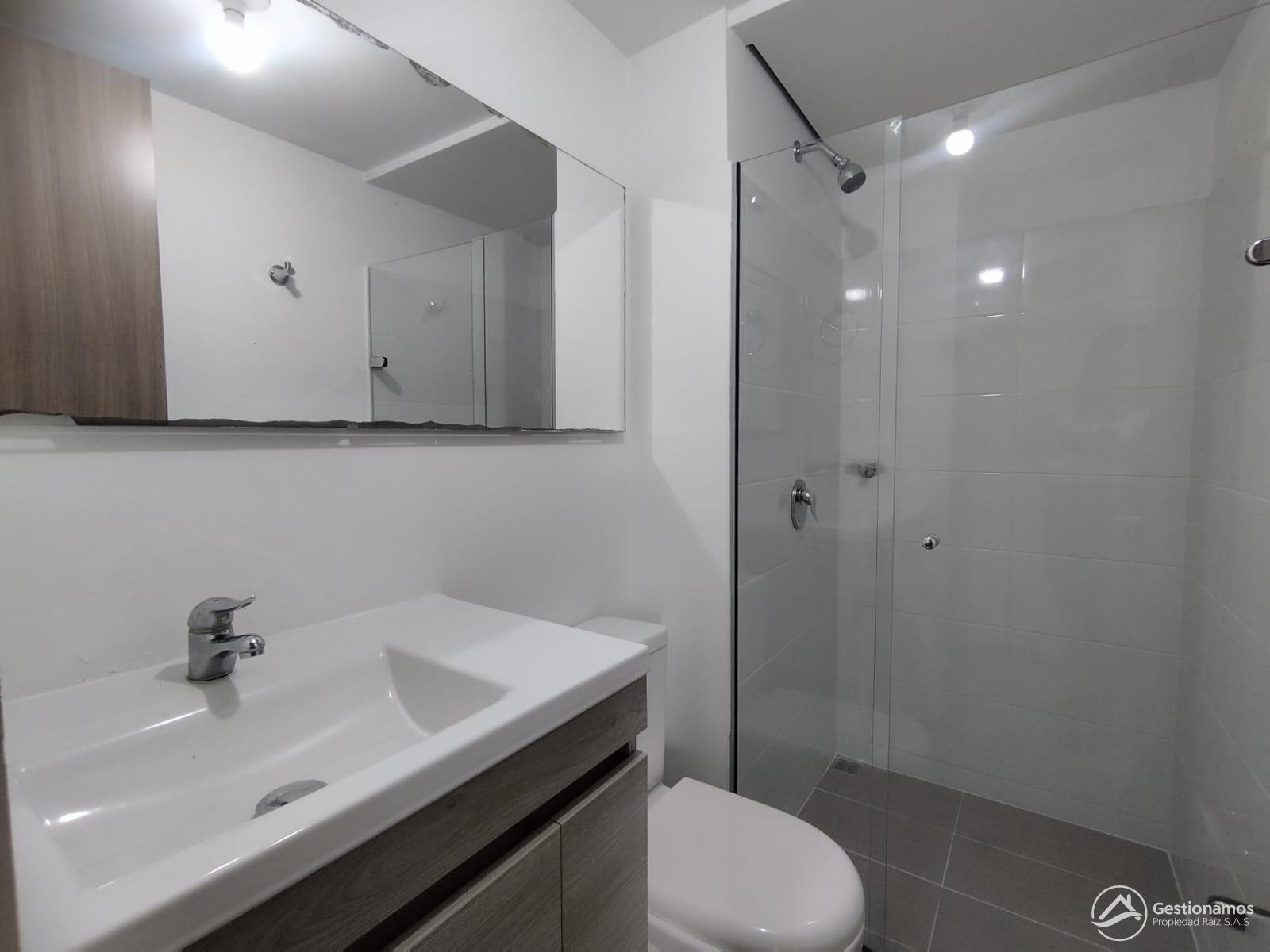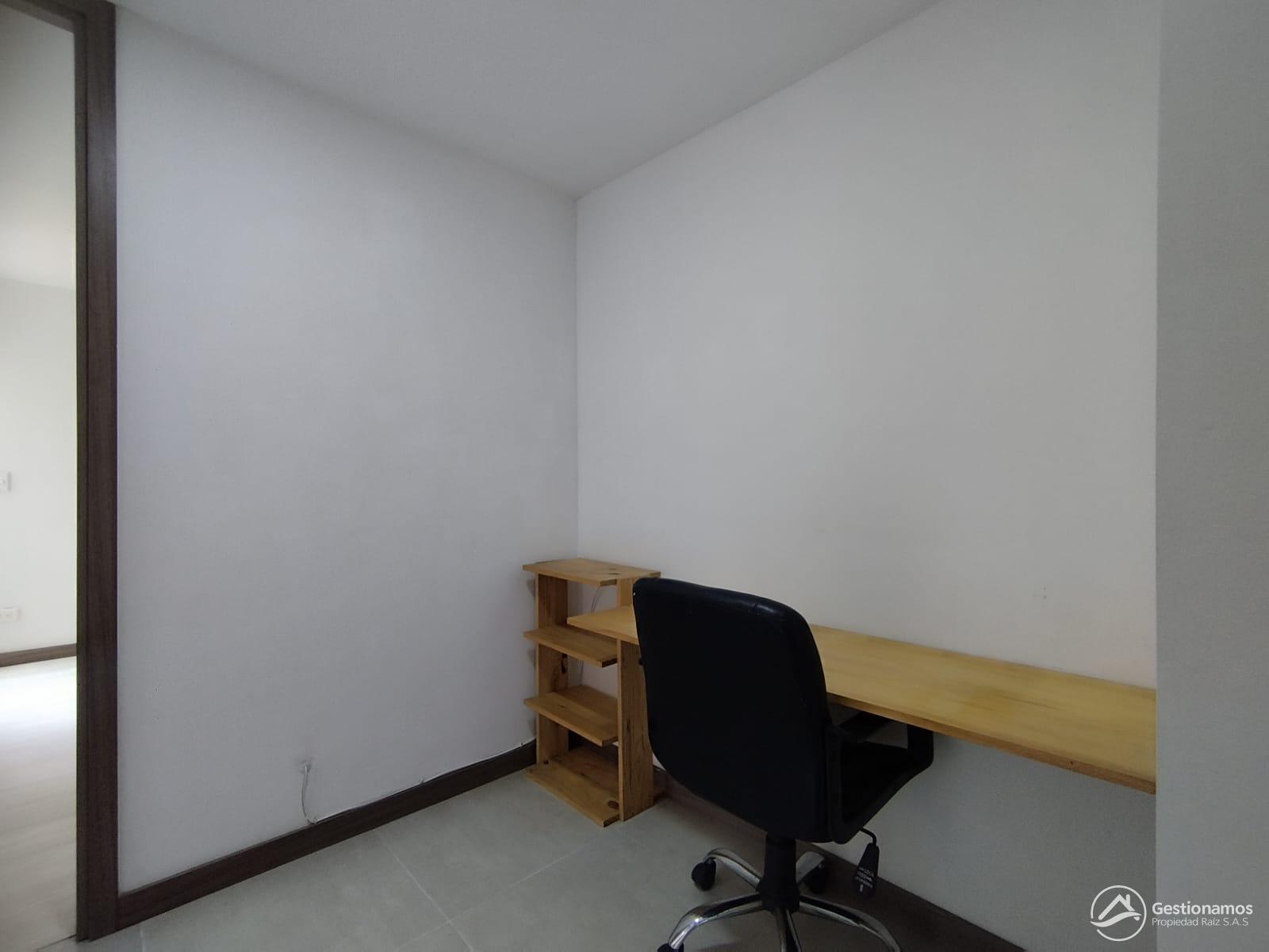 Apartamento de 80 m2, 3 alcobas, biblioteca, sala comedor, cocina integral, 2 baños, 3 closets, piso en cerámica, zona de ropa, parqueadero cubierto, cuarto útil, excelentes acabados e iluminación.