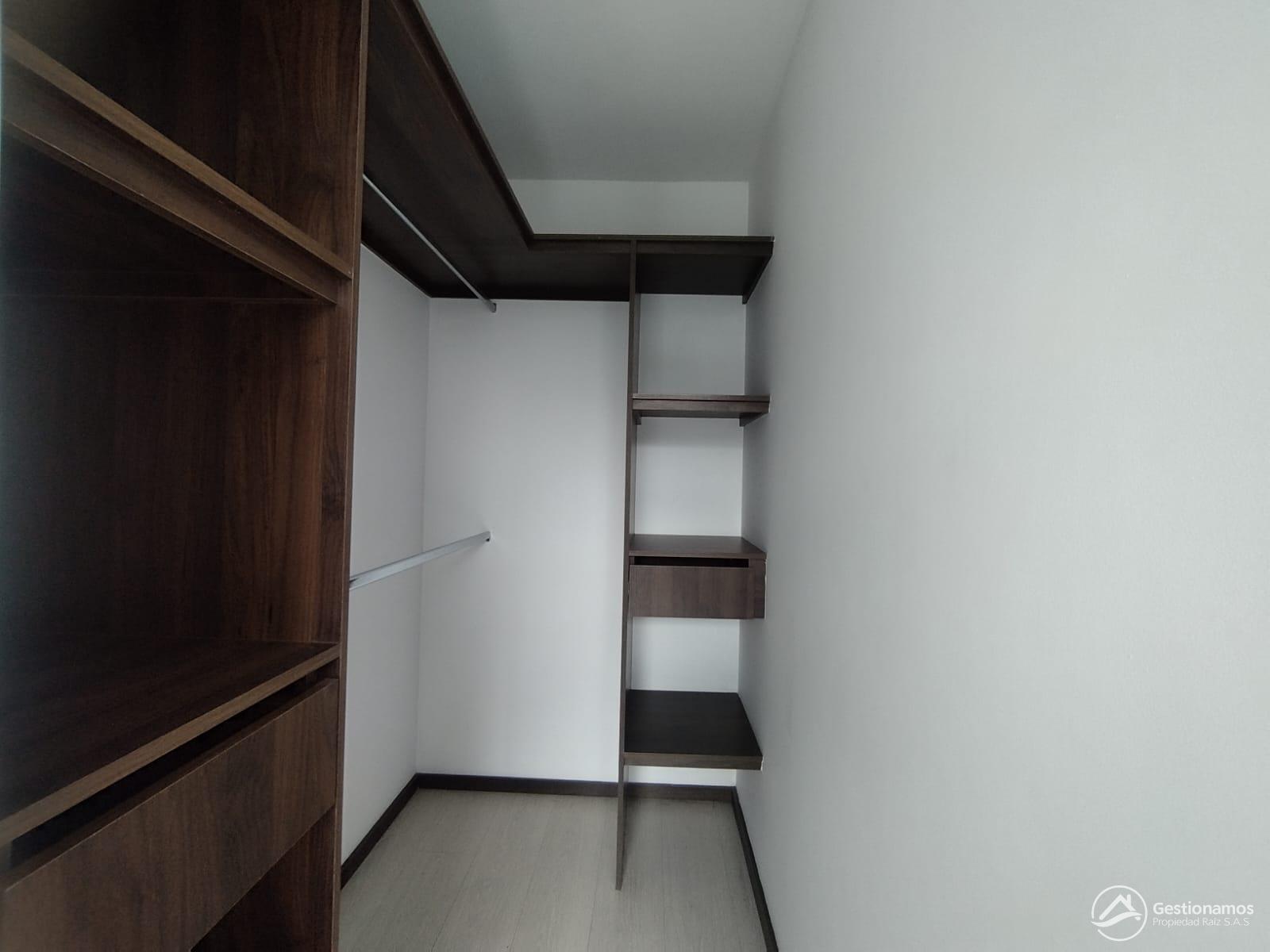 Apartamento de 80 m2, 2 alcobas, sala comedor, cocina integral, 2 baños, 1 closets, 1 vestir, piso en porcelanato, zona de ropa, parqueadero cubierto, cuarto útil, excelentes acabados e iluminación.
