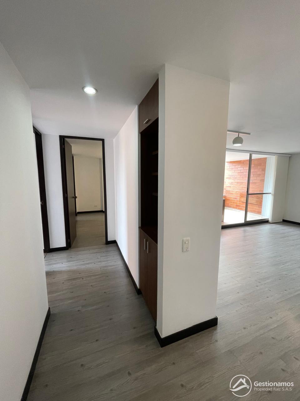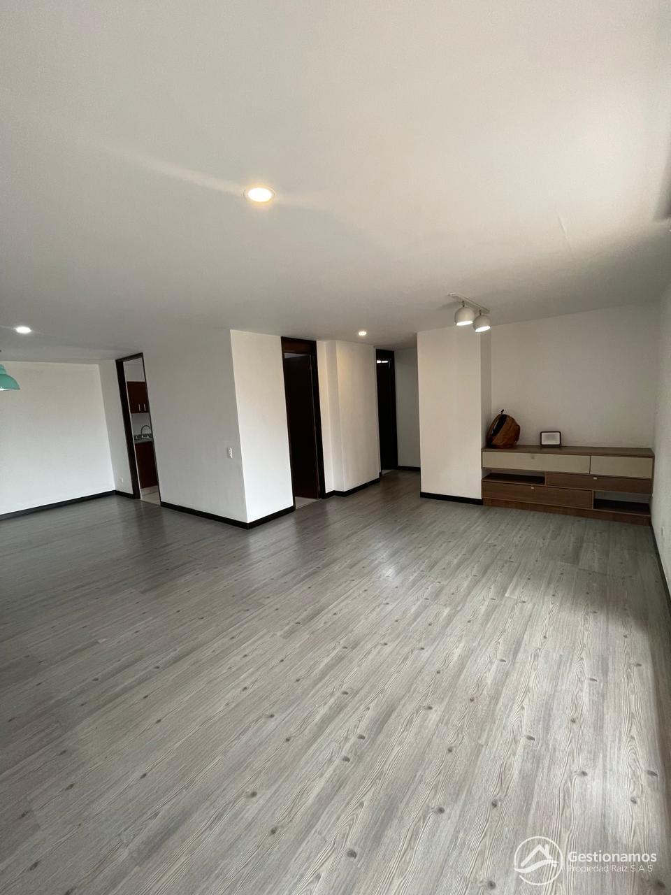 Apartamento de 110 m2, 3 alcobas mas servicio, sala comedor, cocina integral, 3 baños, 2 closets, 1 vestir, piso en cerámica y madera laminada, zona de ropa, parqueadero cubierto doble lineal, cuarto útil, excelentes acabados e iluminación.