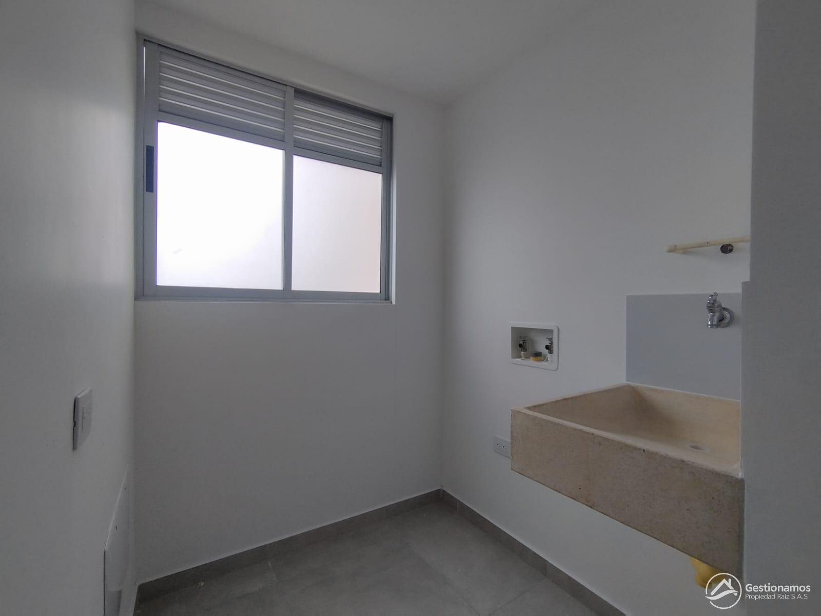 Apartamento de 80 m2, 3 alcobas, sala comedor, cocina integral, 2 baños, 3 closets, 1 vestier, piso en cerámica, zona de ropa, parqueadero cubierto, cuarto útil, excelentes acabados e iluminación.