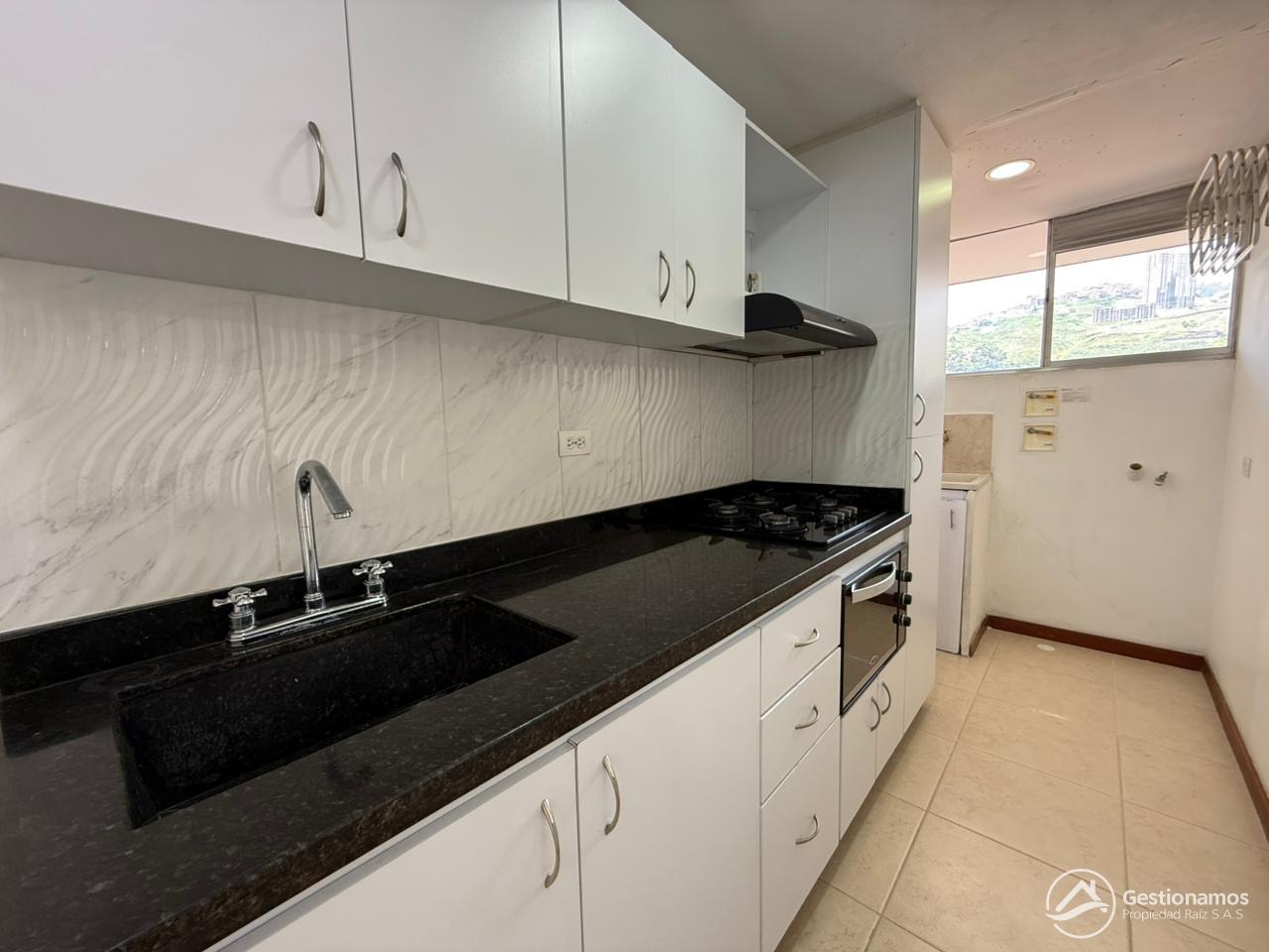 Apartamento de 70 m2, 3 alcobas, sala comedor, cocina integral, 2 baños cabinados, 2 closets, 1 vestier, piso en cerámica, zona de ropa, parqueadero cubierto, excelentes acabados e iluminación.