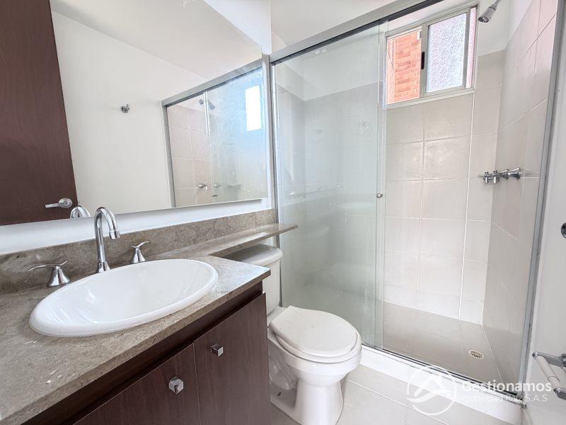 Apartamento de 75 m2, 2 alcobas, sala comedor, cocina integral, 2 baños, 1 closets, 1 vestier, piso en porcelanato, zona de ropa, parqueadero cubierto, cuarto útil, excelentes acabados e iluminación.