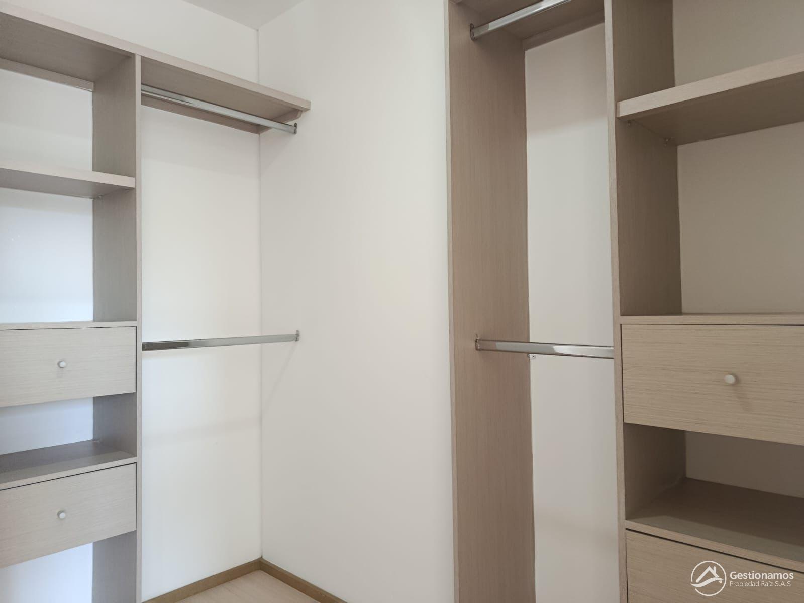 Apartamento de 70 m2, 2 alcobas, sala comedor, cocina integral, 2 baños, 1 closets, 1 vestier, piso en porcelanato, zona de ropa, parqueadero cubierto, cuarto útil, excelentes acabados e iluminación.