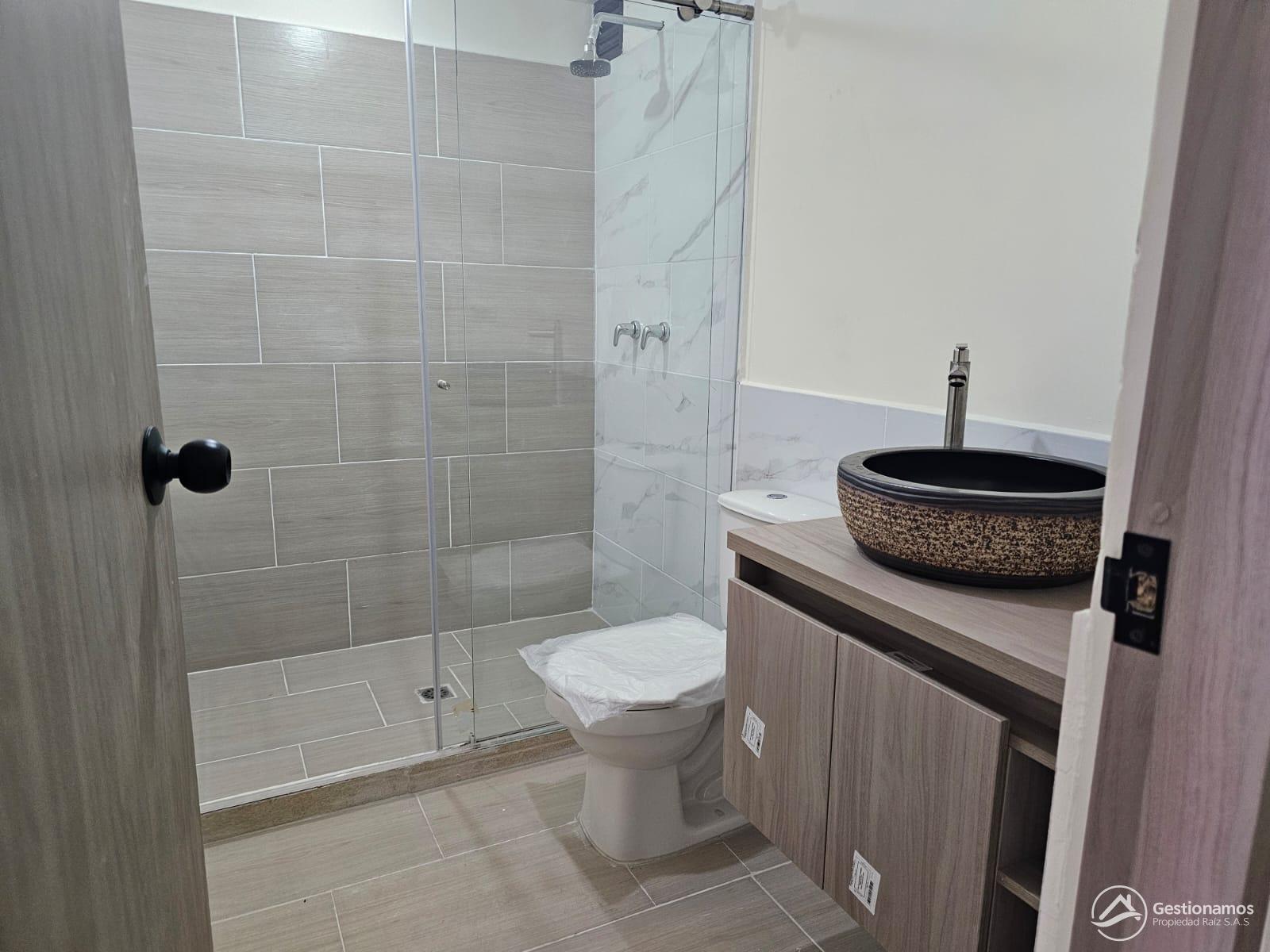 Apartamento de 99 .52 m2, 4 alcobas, sala comedor, cocina integral, 2 baños, 3 closets, piso en porcelanato, zona de ropa, excelentes acabados e iluminación.