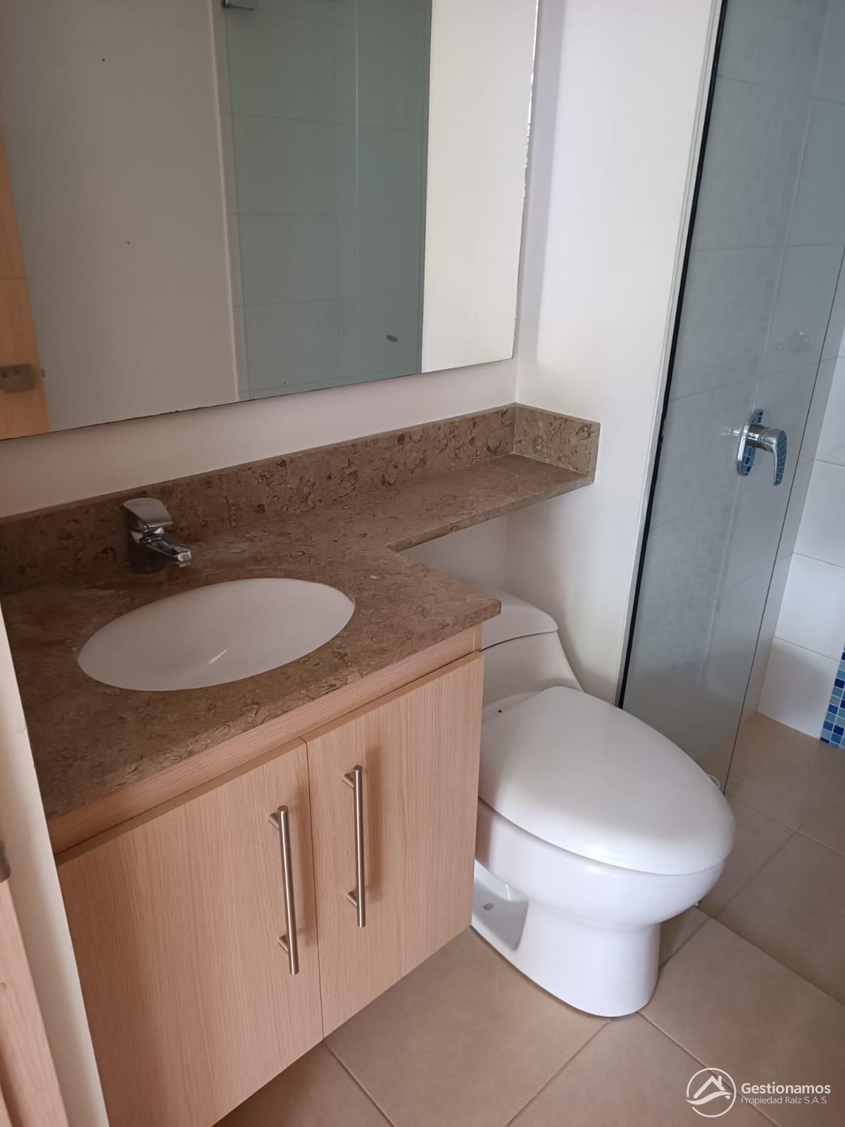 Apartamento de 75 m2, 3 alcobas, sala comedor, cocina integral, 2 baños, 2 closets, 1 vestier, piso en cerámica, zona de ropa, parqueadero cubierto, cuarto útil, excelentes acabados e iluminación.
