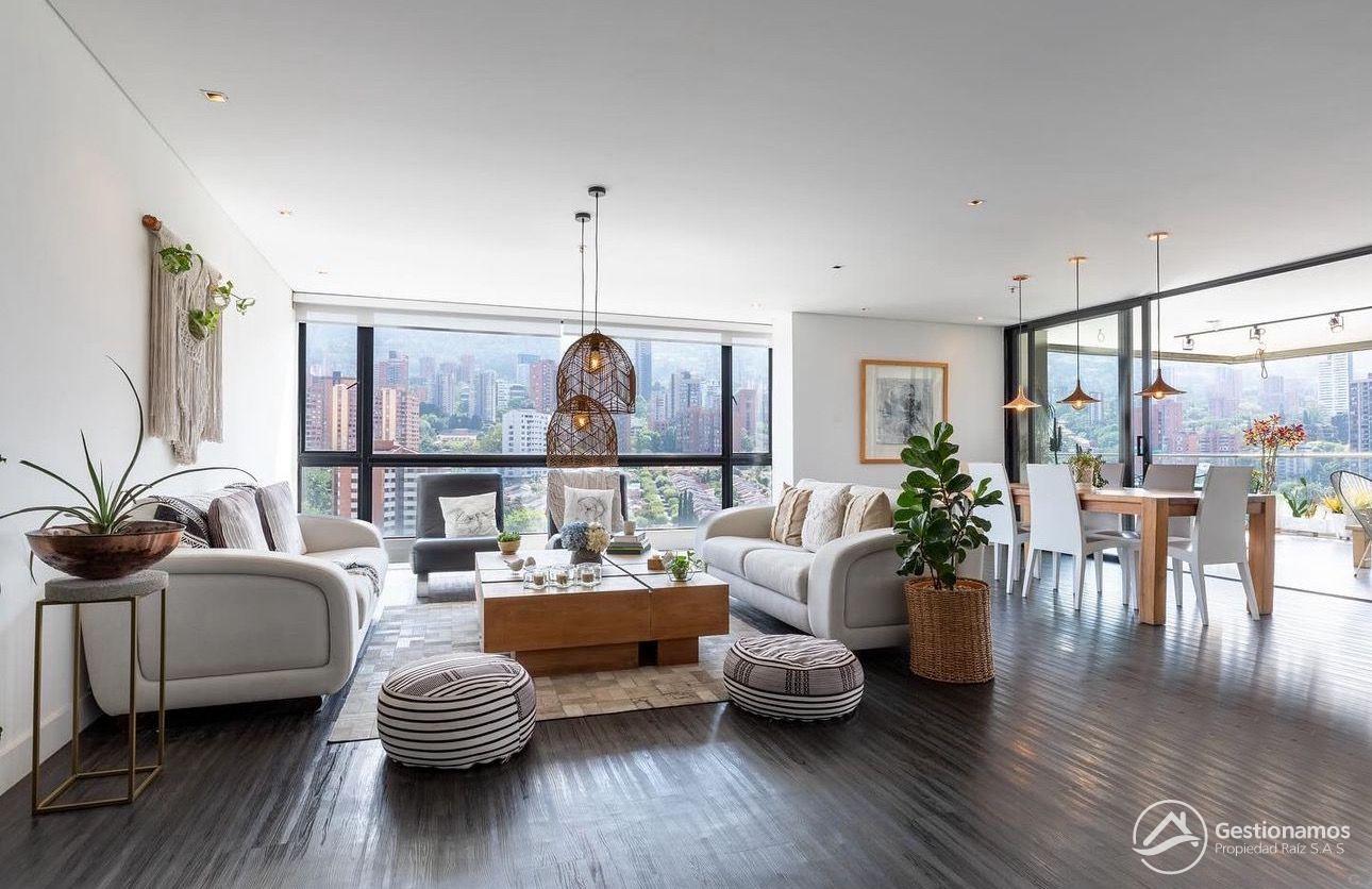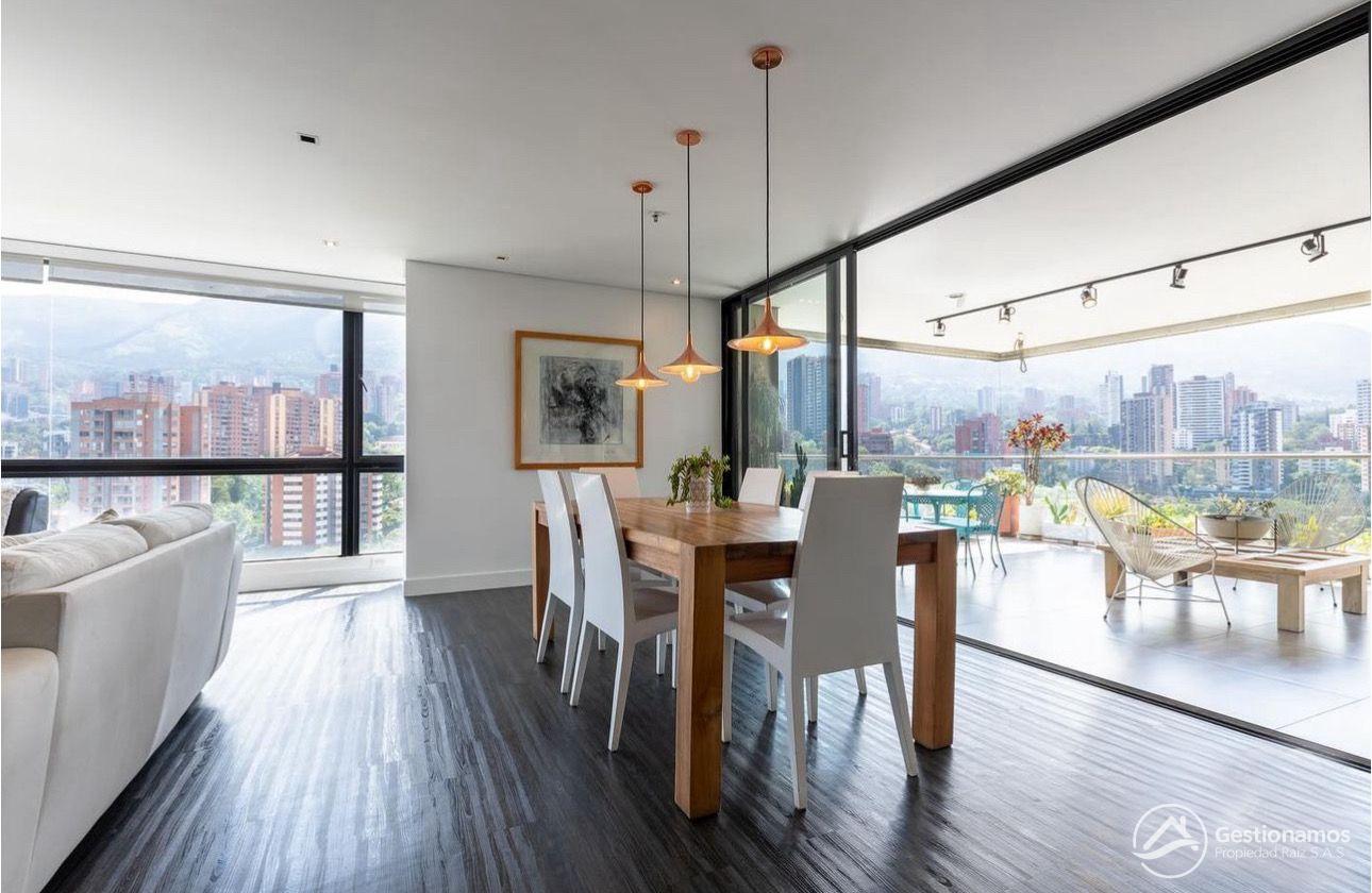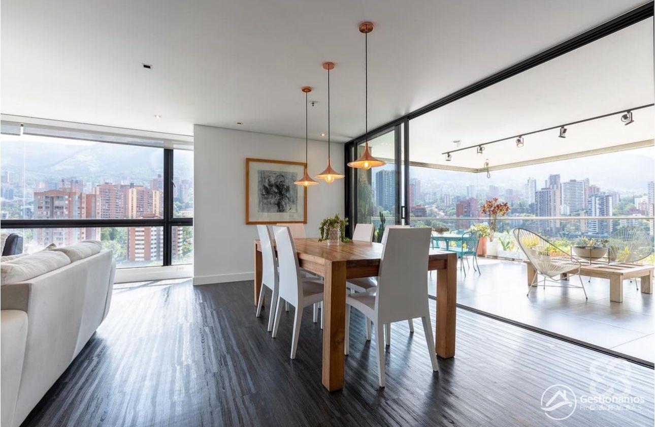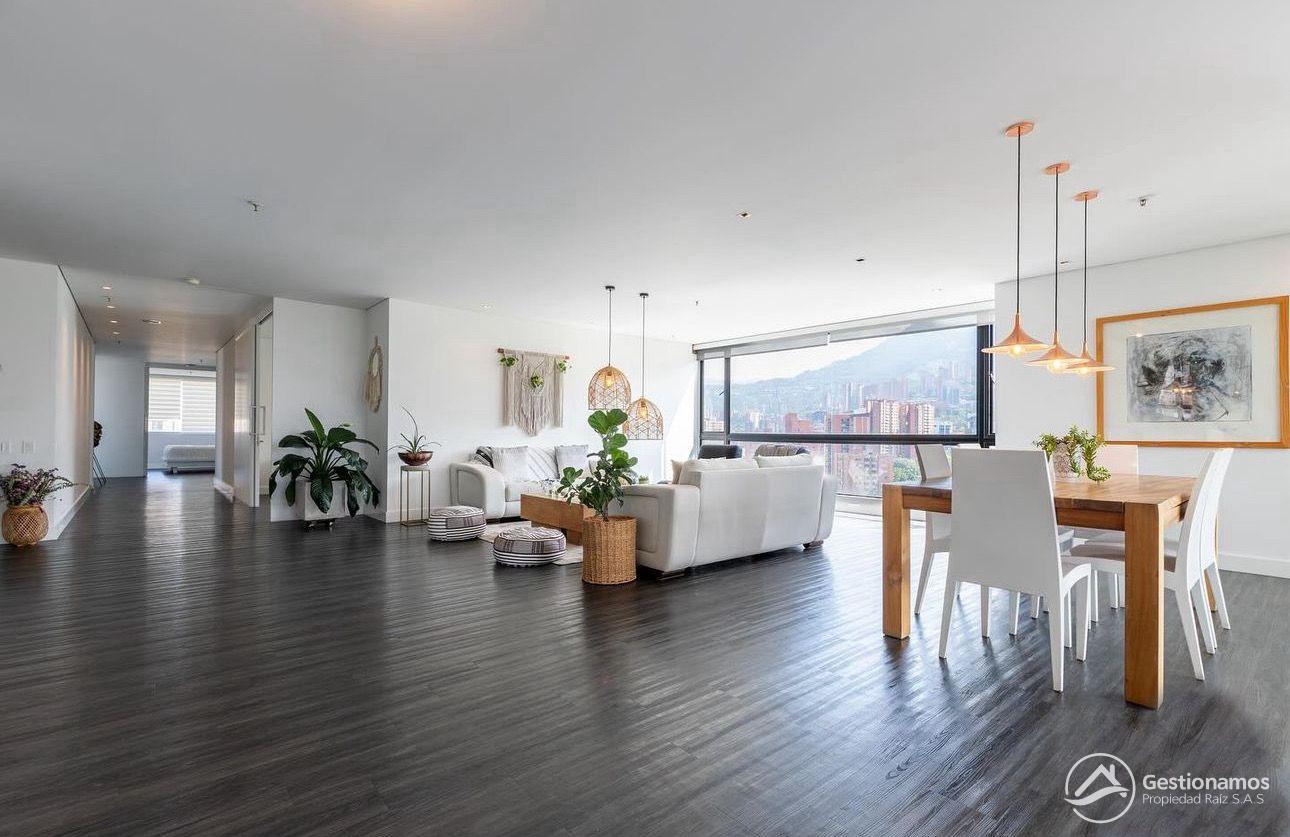 Apartamento de 330 m2, 3 alcobas más servicio, sala comedor, cocina integral, 4 baños más servicio, 1 closets, 3 vestier, piso en madera laminada, zona de ropa, parqueadero, excelentes acabados e iluminación.