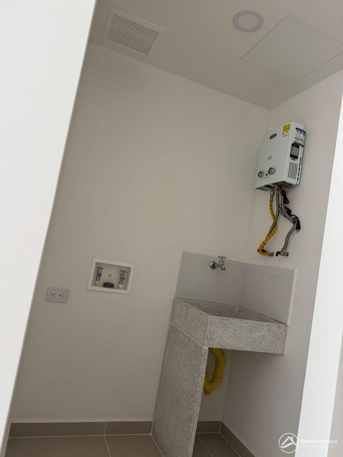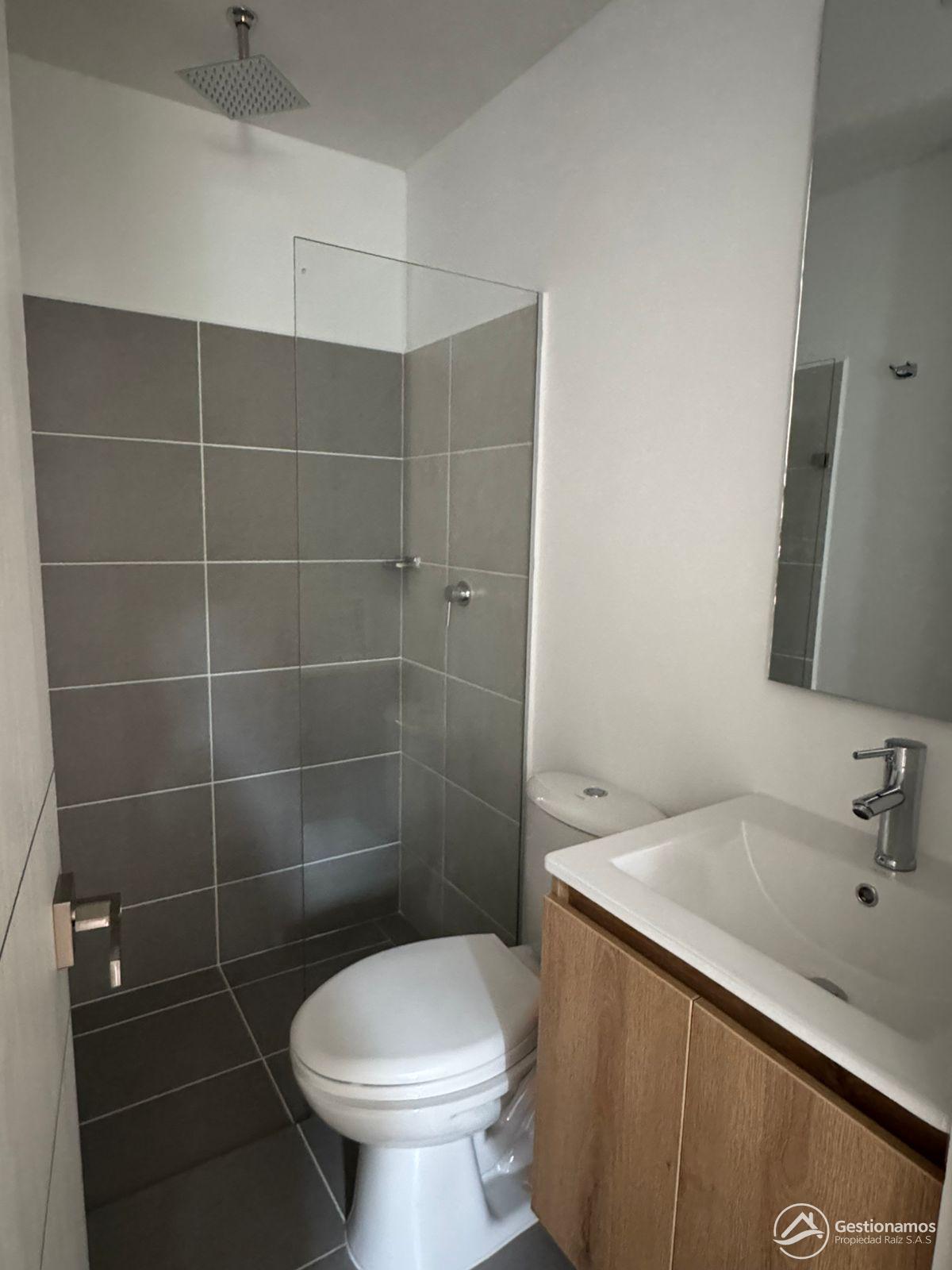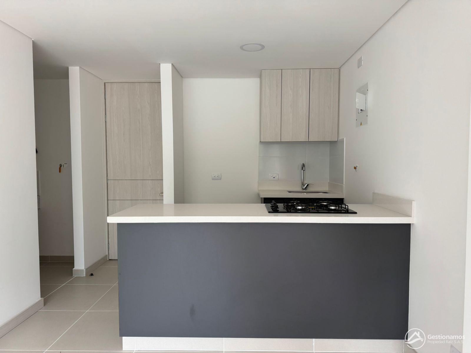 Apartamento de 54 m2, 2 alcobas, sala comedor, cocina integral, 2 baños, 1 closets, 1 vestier, piso en porcelanato, zona de ropa, parqueadero cubieerto, excelentes acabados e iluminación.