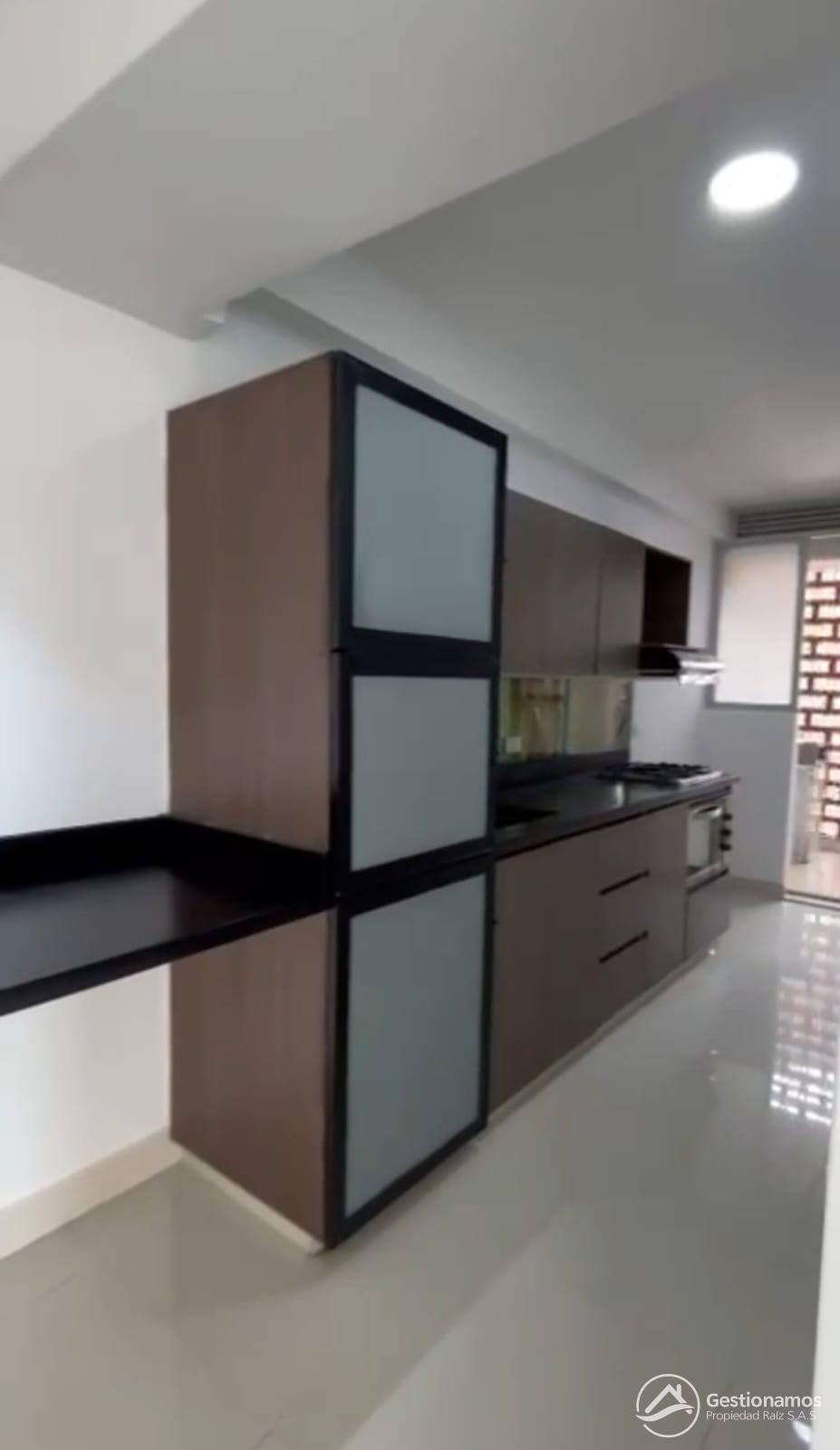 Apartamento de 71 m2, 3 alcobas, sala comedor, cocina integral, 2 baños, 3 closets, piso en cerámica, zona de ropa, parqueadero cubierto, cuarto útil, excelentes acabados e iluminación.