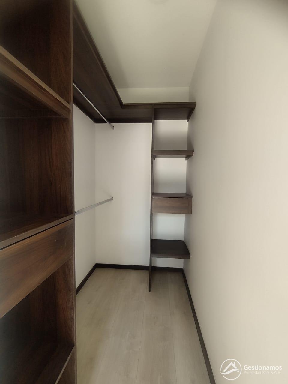 Apartamento de 80 m2, 2 alcobas, sala comedor, cocina integral, 2 baños, 1 closets, 1 vestir, piso en porcelanato, zona de ropa, parqueadero cubierto, cuarto útil, excelentes acabados e iluminación.