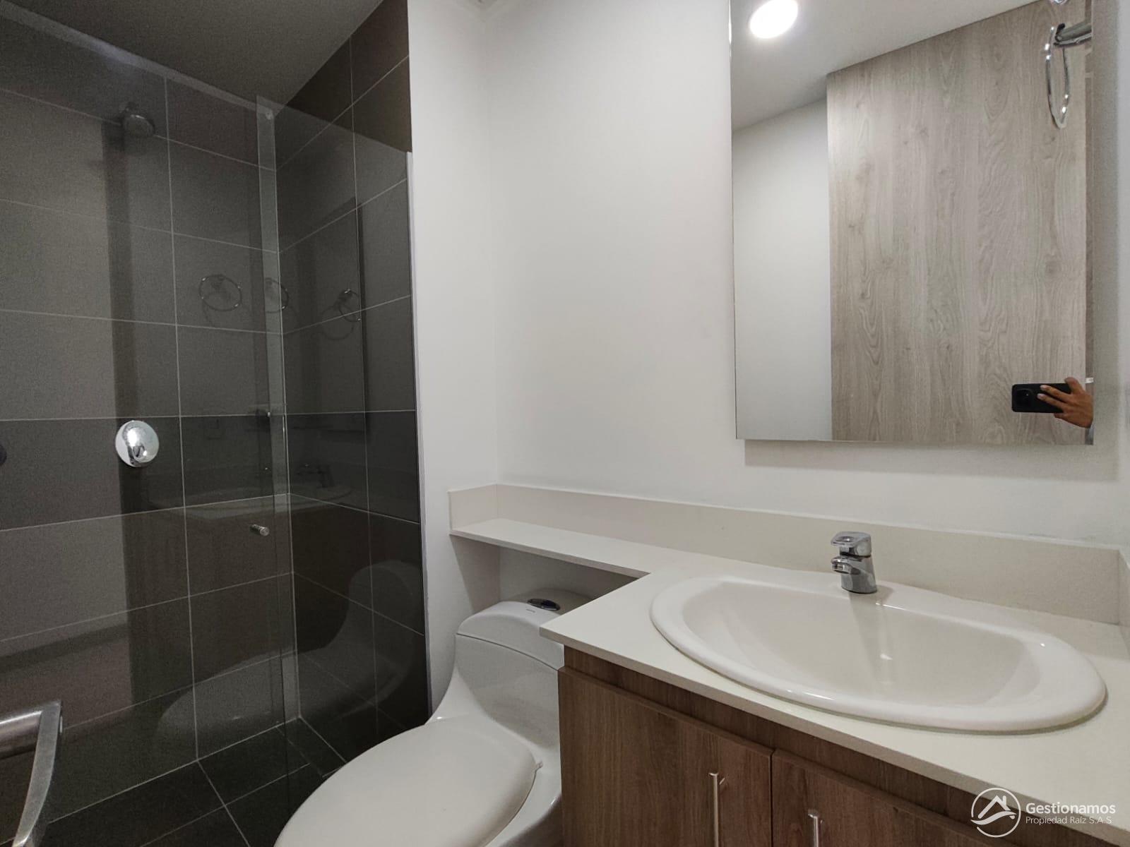 Apartamento de 90 m2, 3 alcobas, sala comedor, cocina integral, 2 baños, 2 closets, 1 vestier, piso en cerámica, zona de ropa, parqueadero cubierto, cuarto útil, excelentes acabados e iluminación.