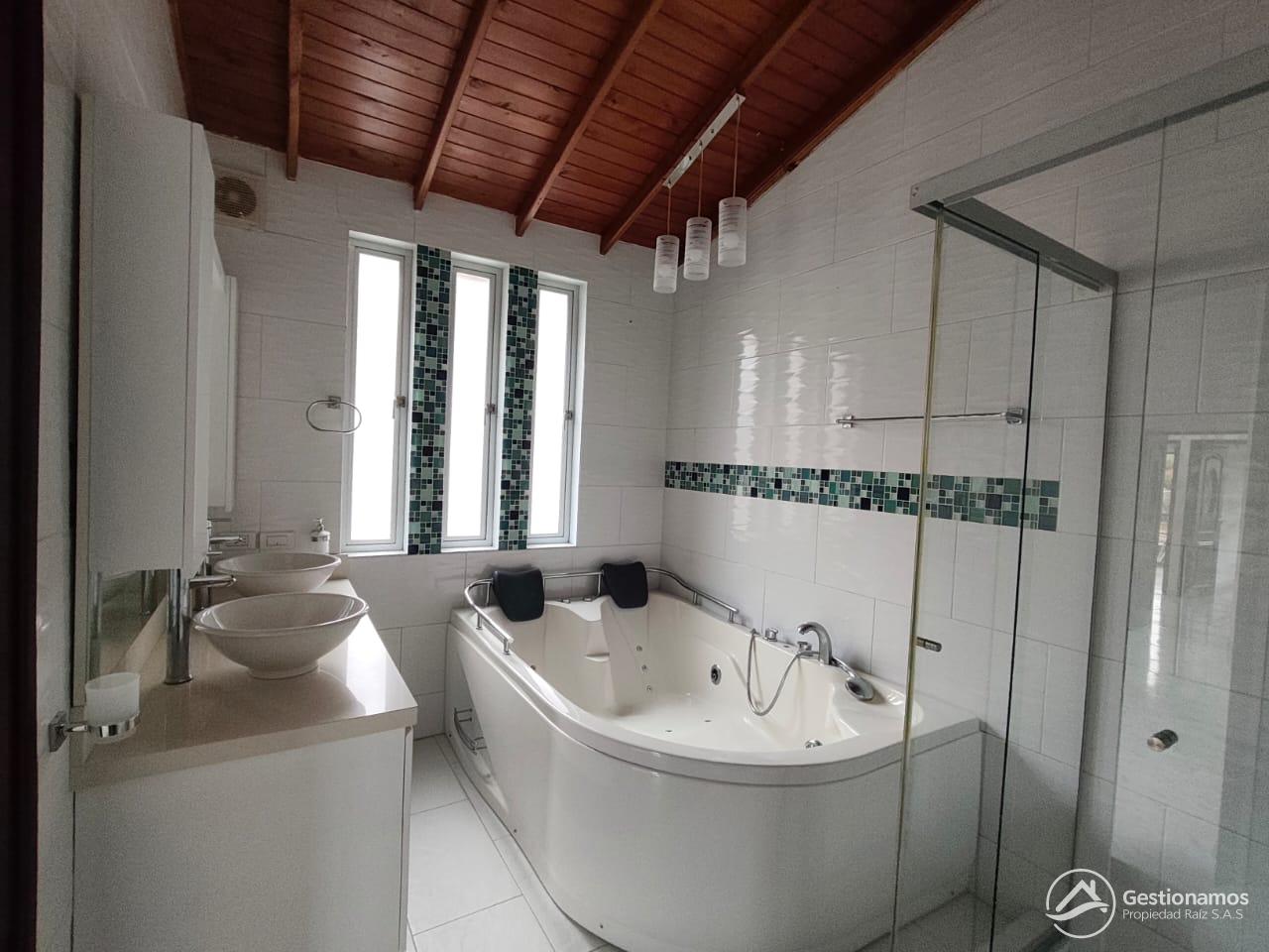 Casa de 160 m2, 4 alcobas, sala comedor, cocina integral, 3 baños, jacuzzi, 4 closets, piso en porcelanato, zona de ropa, parqueadero cubierto, excelentes acabados e iluminación.