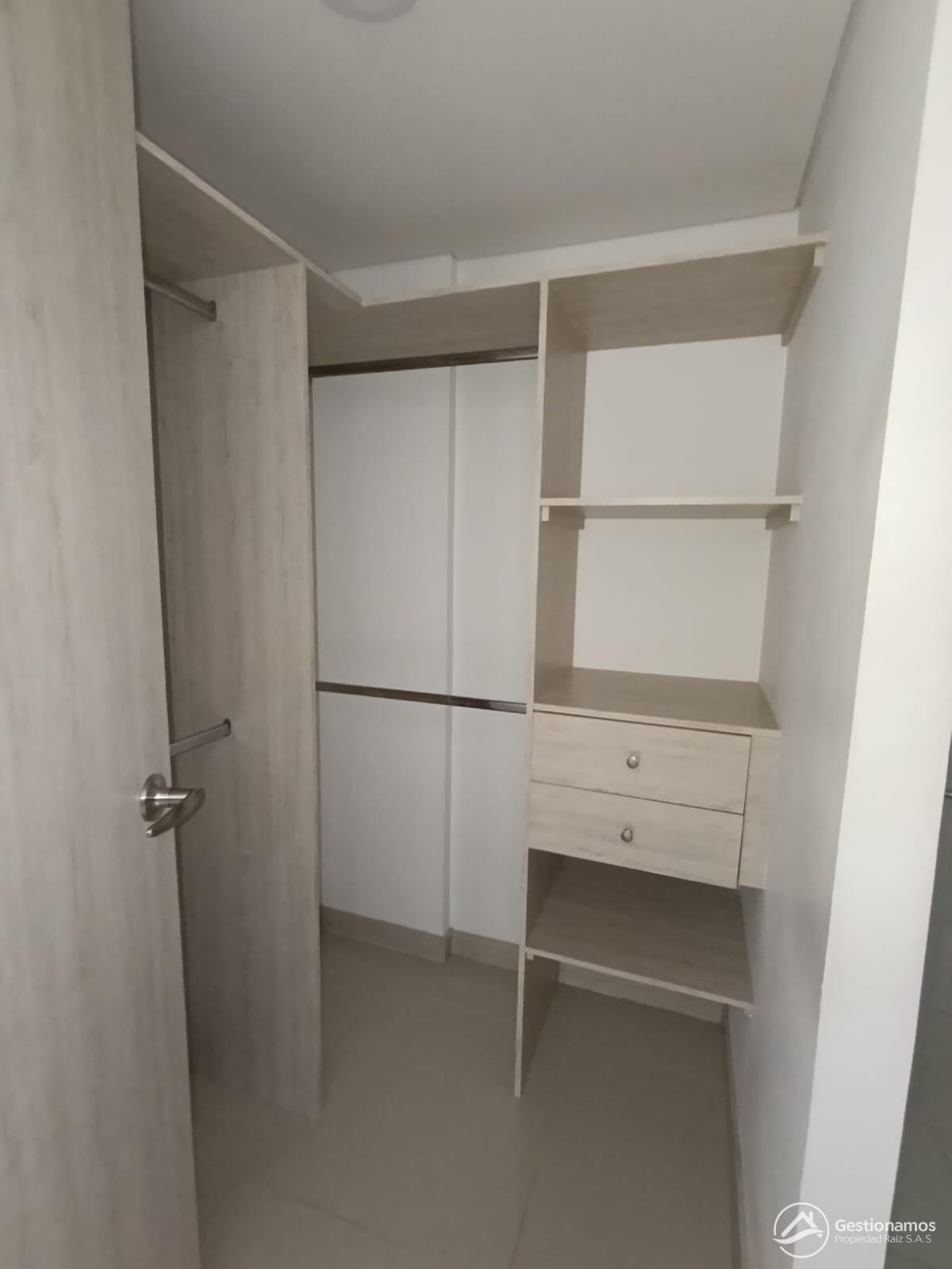 Apartamento de 60 m2, 3 alcobas, sala comedor, cocina integral, 2 baños, 2 closets, 1 vestir, piso en porcelanato, zona de ropa, parqueadero cubierto, excelentes acabados e iluminación.