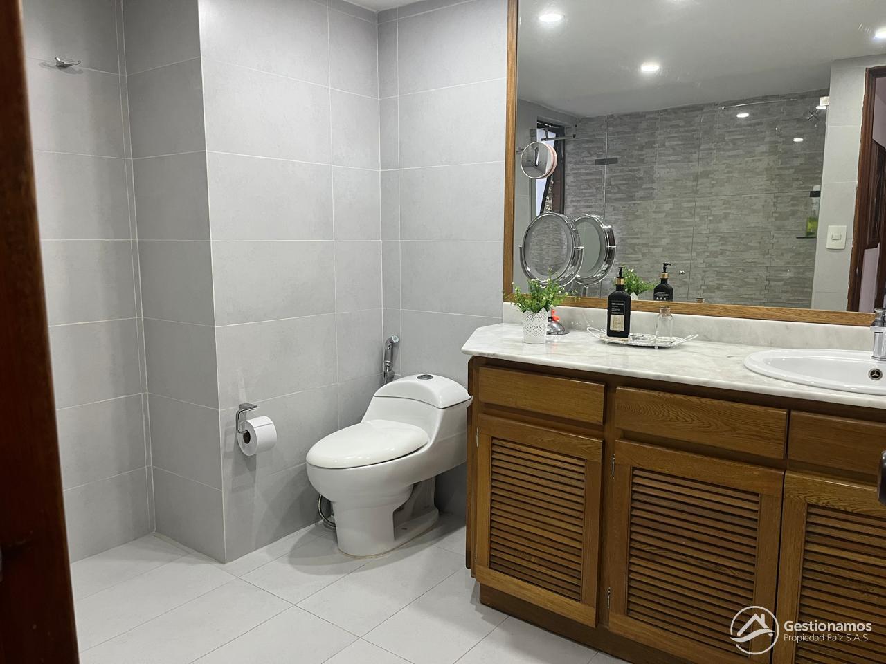 Apartamento de 198 m2, 3 alcobas más servicio, sala comedor, cocina integral, 3 baños más servicios , 2 closets, 1 vestier, balcón, piso en cerámica y madera laminada, estudio , star / hall, zona de ropa, parqueadero doble lineal cubierto, cuarto útil, excelentes acabados e iluminación.