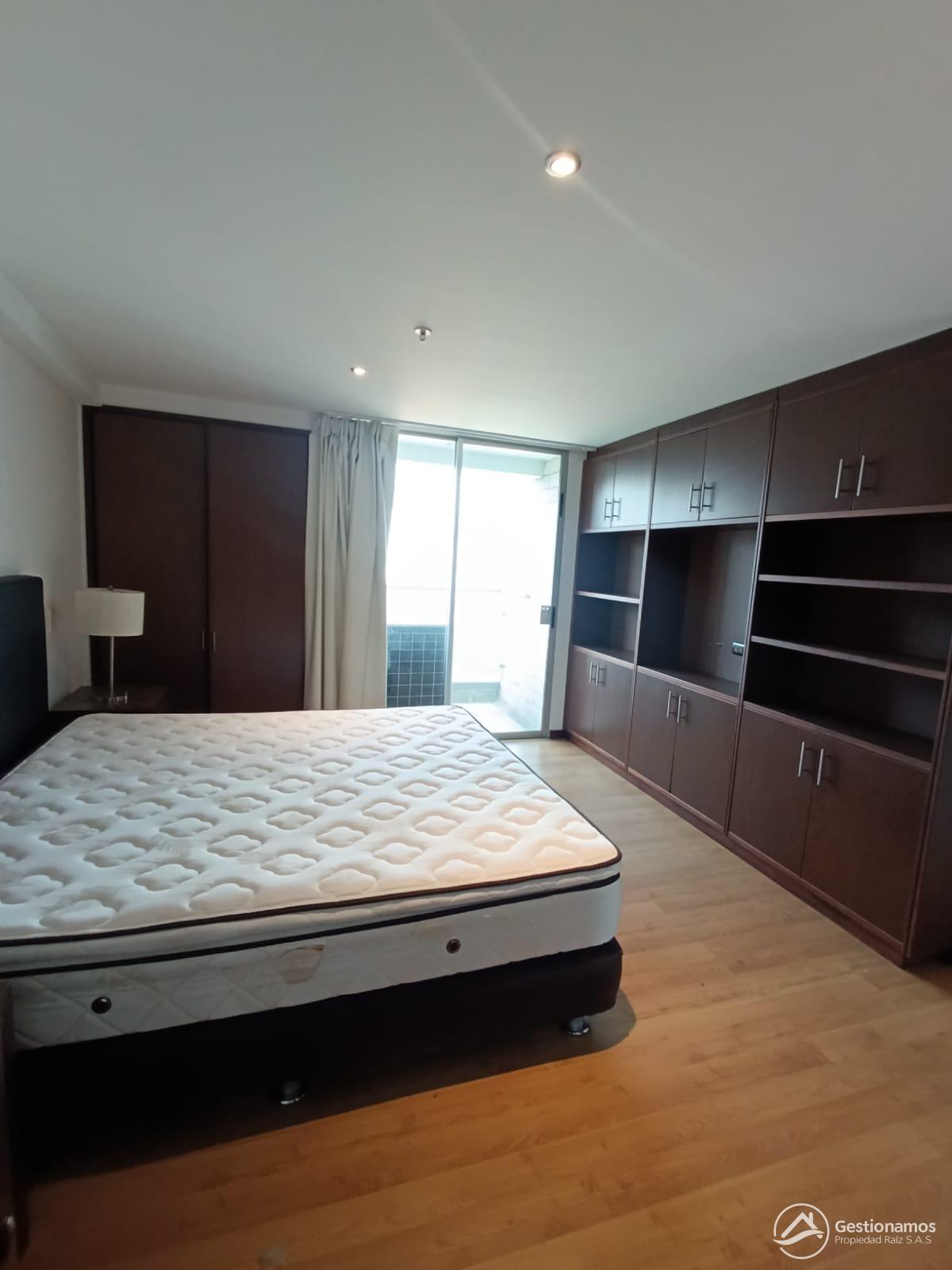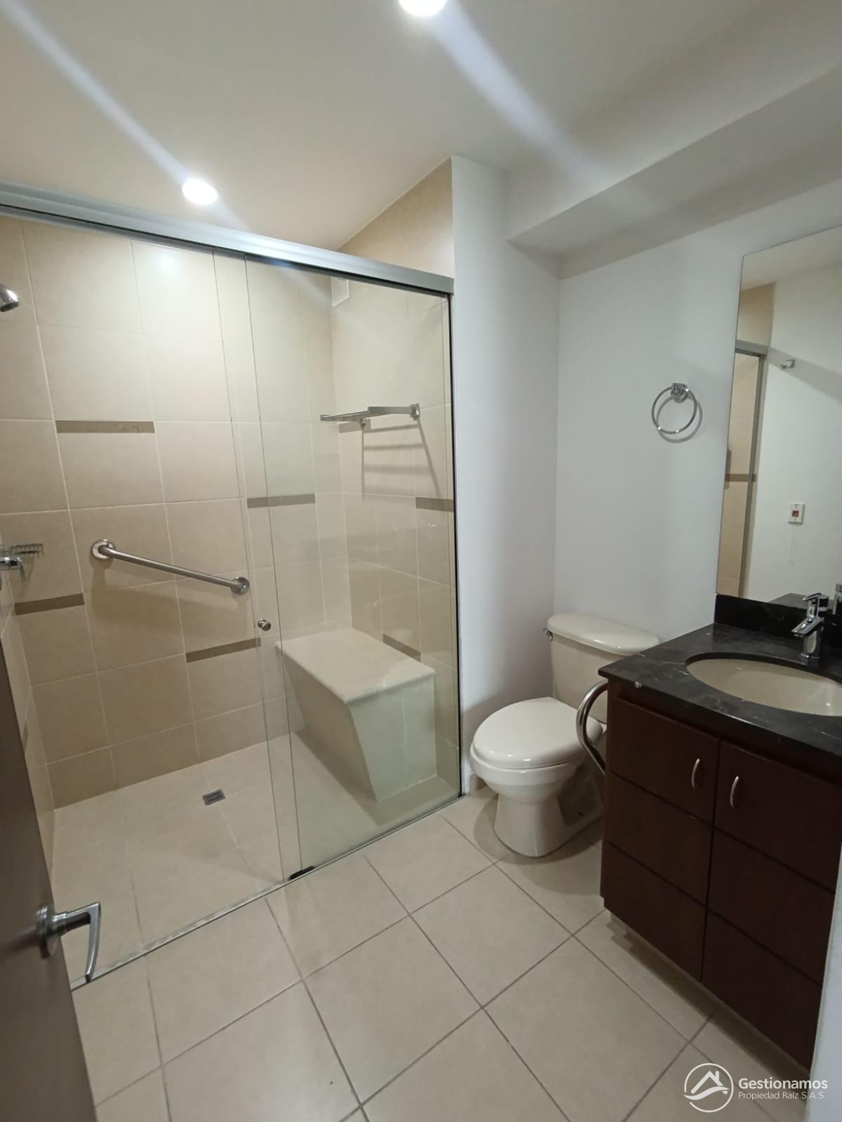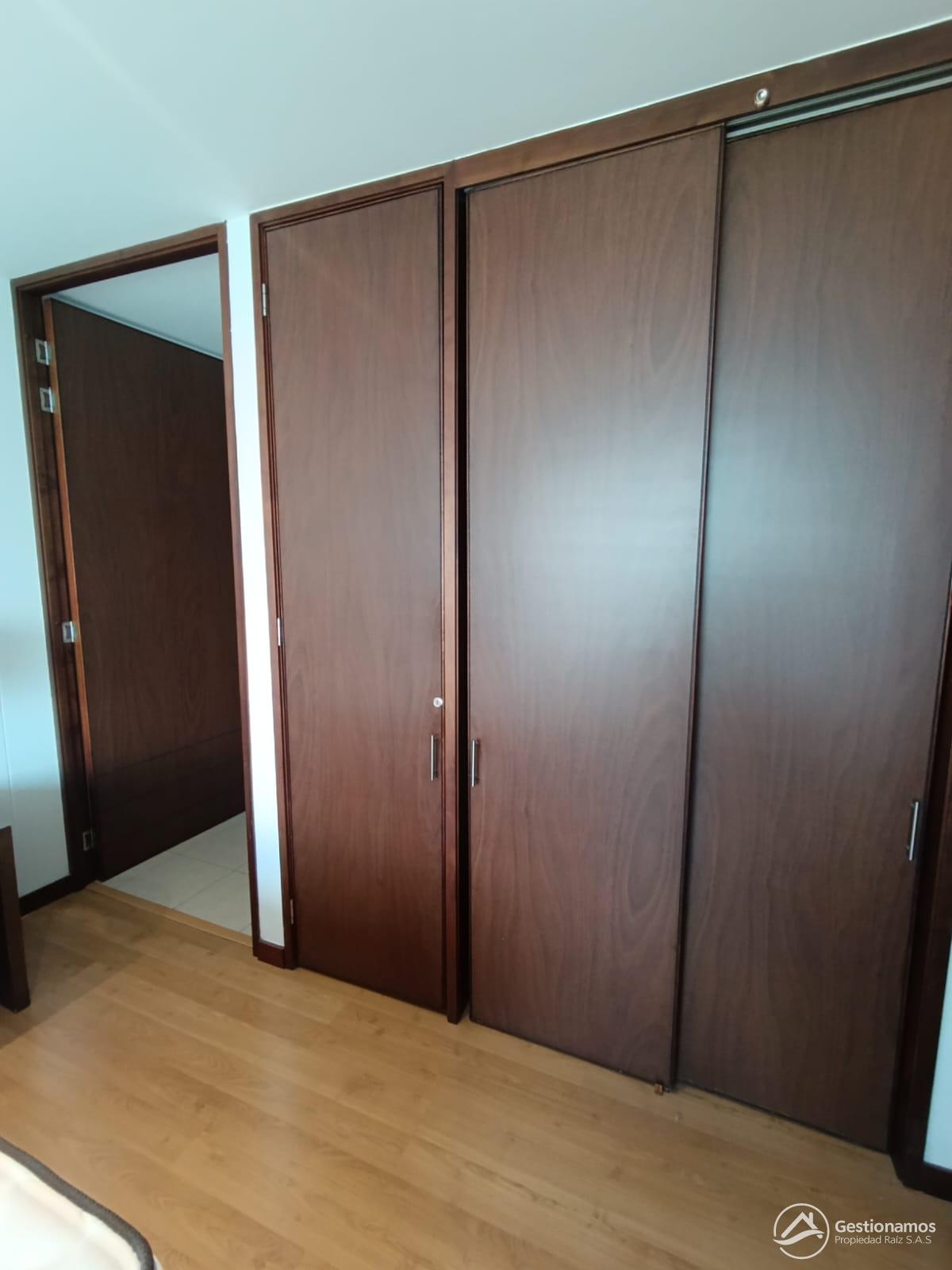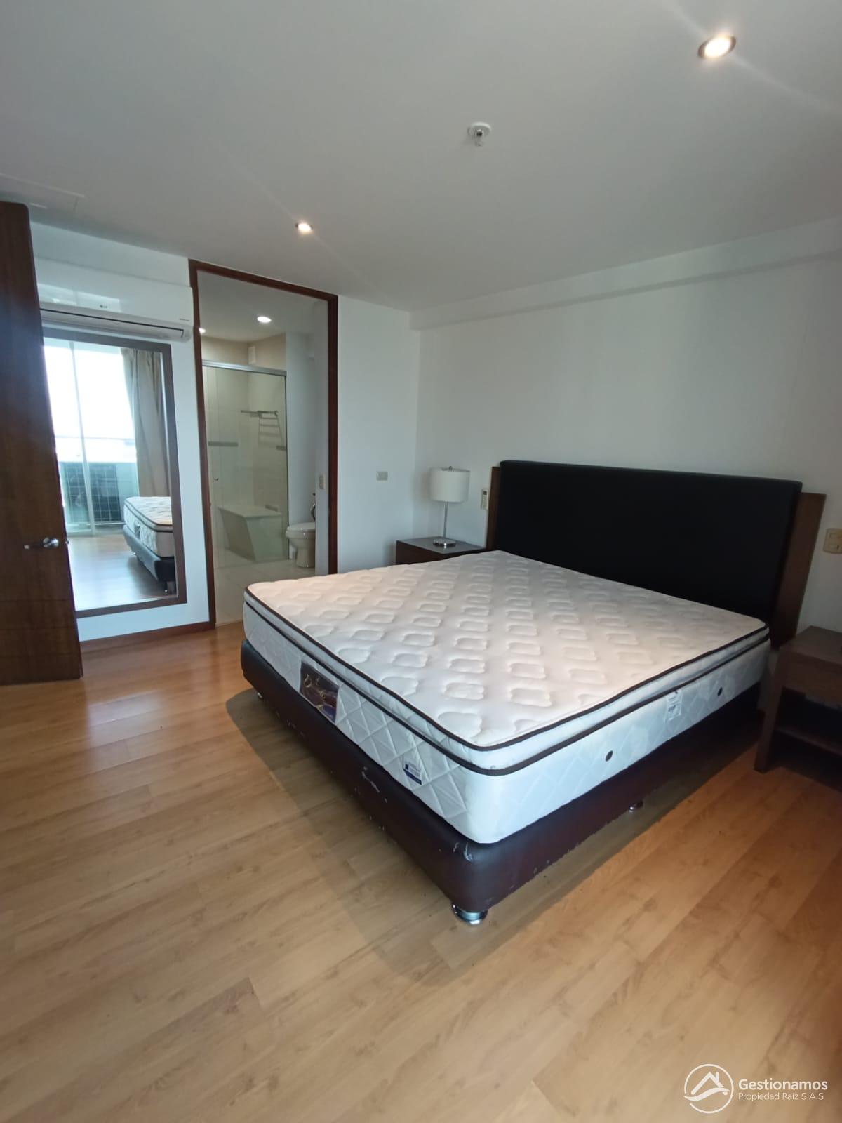 Apartamento de 80 m2, 2 alcobas, 2 closets, sala comedor, cocina integral, 2 baños, piso en porcelanato y madera laminada, zona de ropa, parqueadero, excelentes acabados e iluminación.