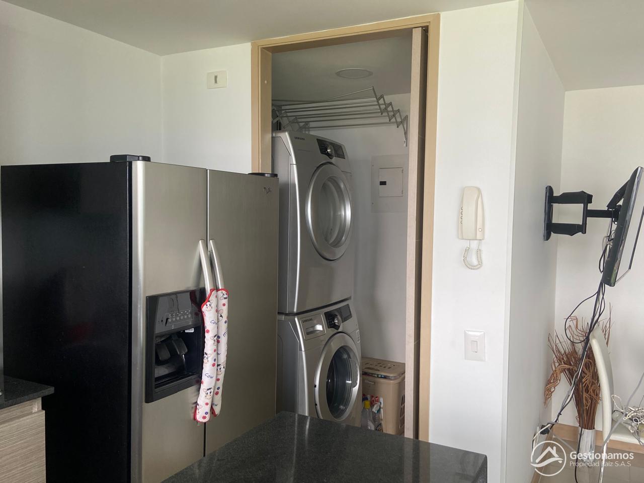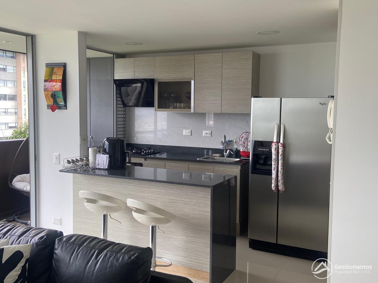 Apartamento de 70 m2, 2 alcobas, sala comedor, cocina integral, 2 baños, 1 closets, 1 vestir, piso en porcelanato, zona de ropa, parqueadero cubierto, cuarto útil, excelentes acabados e iluminación.