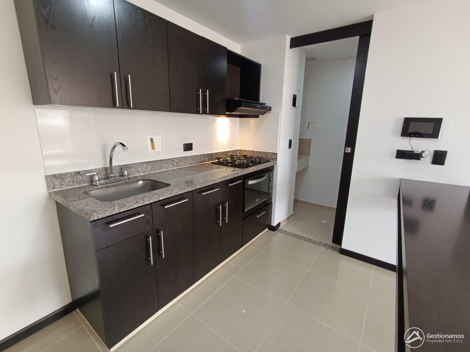 Apartamento de 75 m2, 3 alcobas, sala comedor, cocina integral, 2 baños, 2 closets, 1 vestier, piso en porcelanato, zona de ropa, parqueadero cubierto, cuarto útil, excelentes acabados e iluminación.