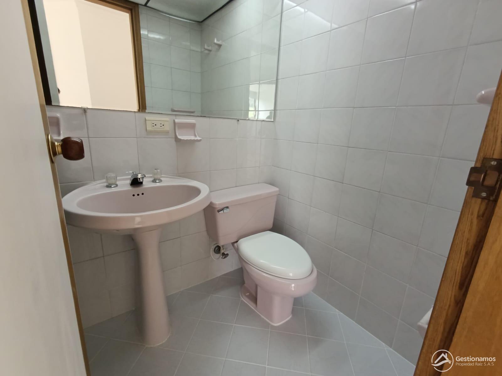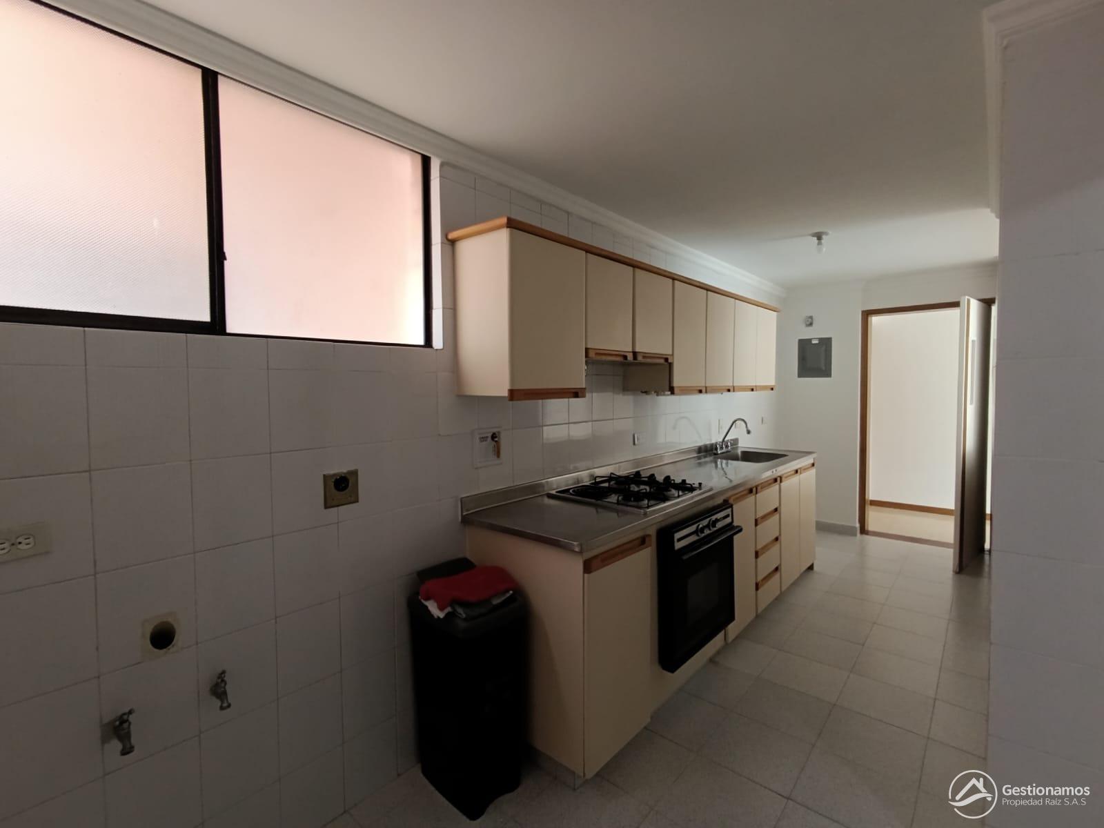 Apartamento de 120 m2, 3 alcobas más servicio, sala comedor, cocina integral, 2 baños más servicio, 3 closets, 1 vestier, piso en marmol, zona de ropa, parqueadero cubierto, cuarto útil, excelentes acabados e iluminación.