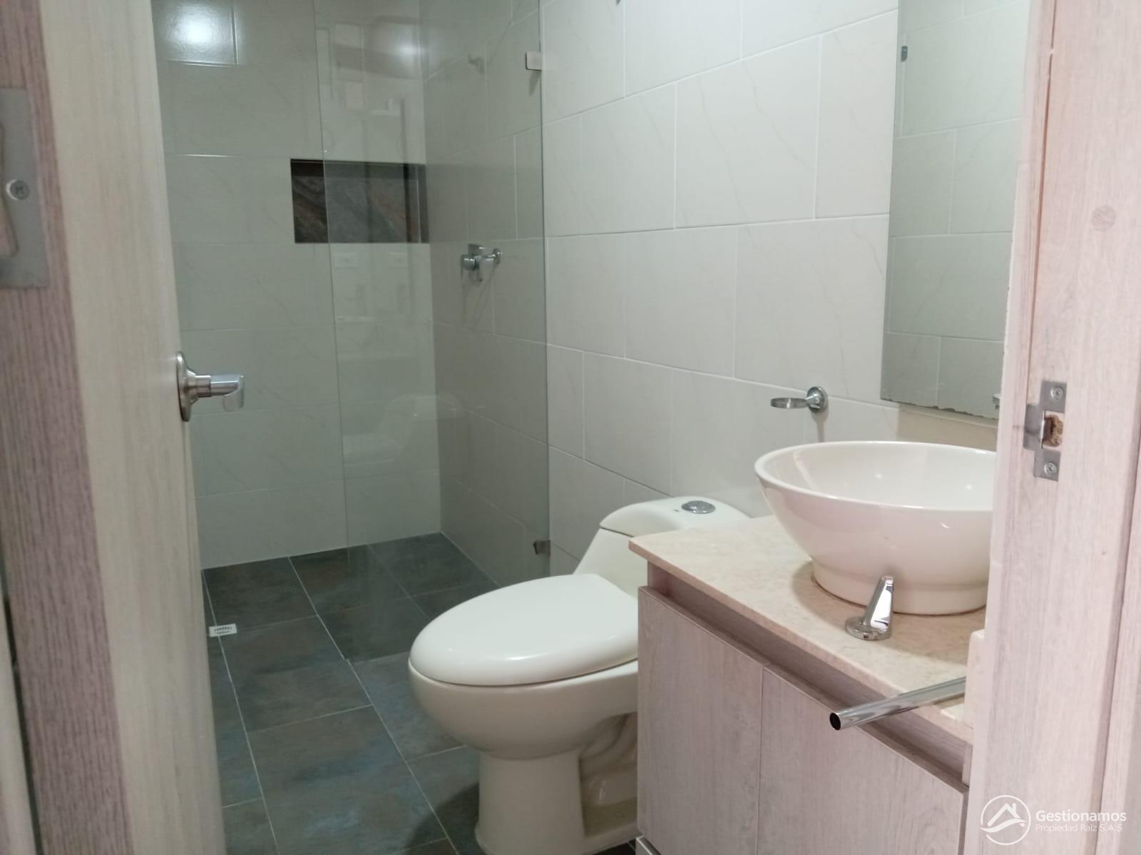 Apartamento de 70 m2, 2 alcobas, sala comedor, cocina integral, 2 baños, 2 closets, piso en cerámica, zona de ropa, parqueadero cubierto, excelentes acabados e iluminación.