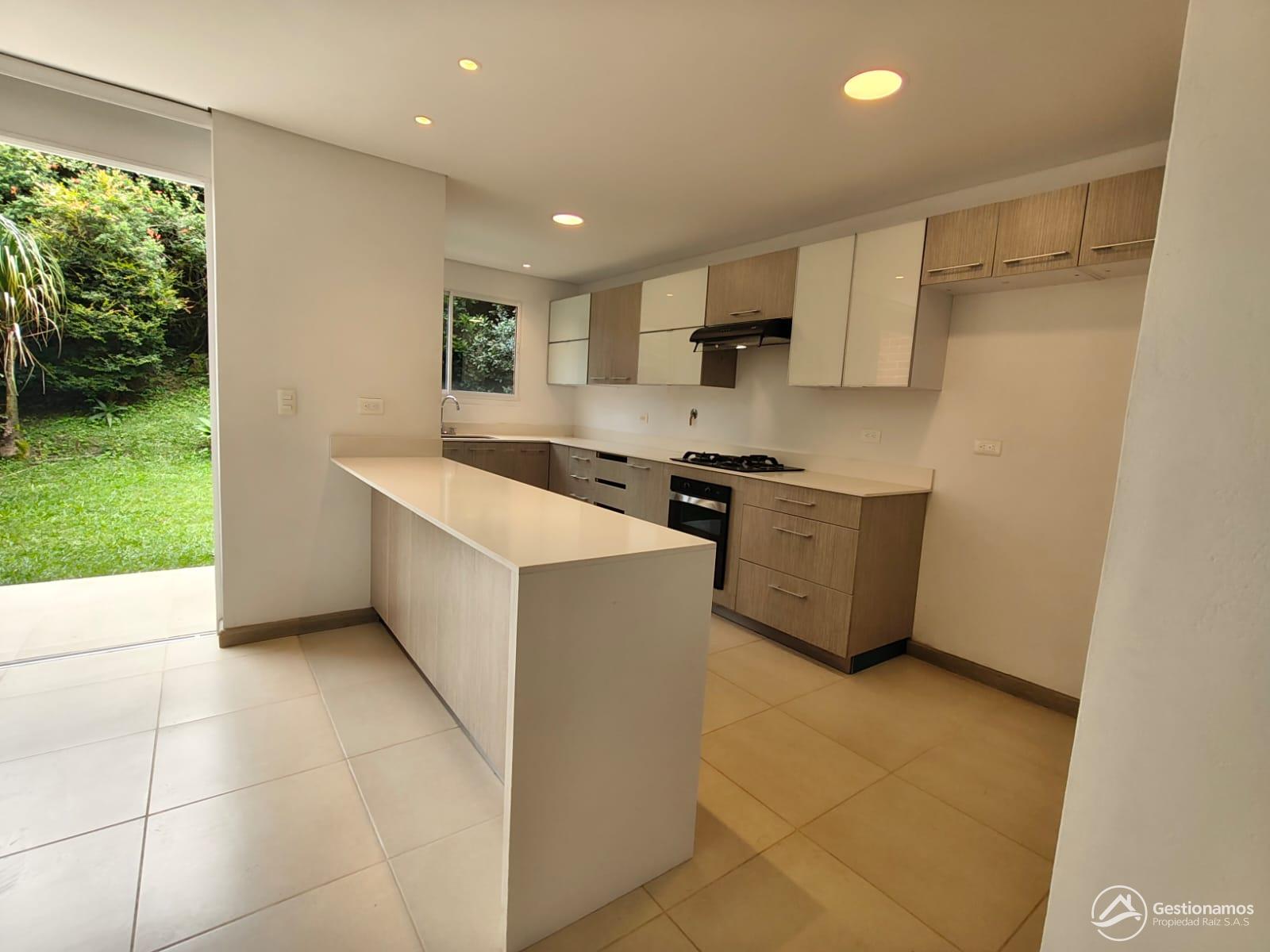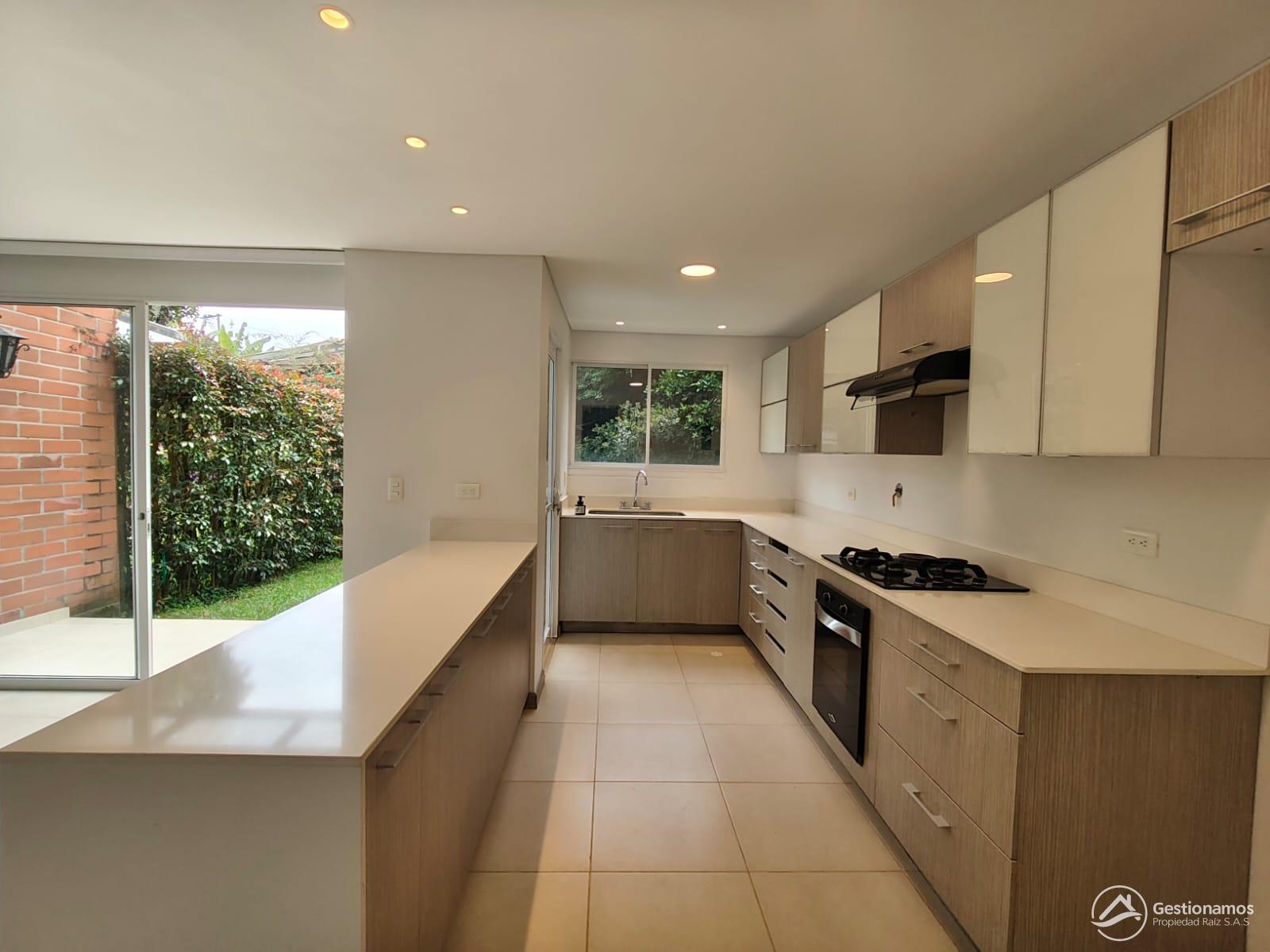Casa de 170 m2, 3 niveles, 3 alcobas, sala comedor, cocina integral, 4 baños, 2 closets, piso en cerámica y madera laminada, zona de ropa, 4 balcones, parqueadero cubierto, jardin y ante jardin, zona BBQ, excelentes acabados e iluminación.